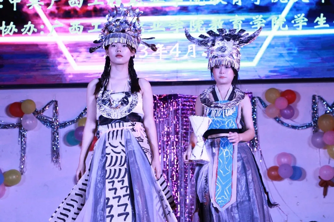 “花開三月三,春光暖人心”,為弘揚(yáng)民族文化,傳承民族精神,提高同學(xué)們的環(huán)保意識(shí),培養(yǎng)和激發(fā)同學(xué)們的創(chuàng)新意識(shí)和實(shí)踐能力,提倡和宣傳合理利用綠色資源的環(huán)保理念。2023年4月25日晚,廣西工程職業(yè)學(xué)院教育學(xué)院在體育館舉行第一屆“弘揚(yáng)民族文化,展現(xiàn)創(chuàng)新風(fēng)采”環(huán)保時(shí)裝秀。