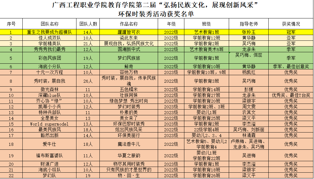 經(jīng)過精彩的角逐,最終有一支隊(duì)伍獲得一等獎(jiǎng),兩支隊(duì)伍獲得二等獎(jiǎng),三支隊(duì)伍獲得三等獎(jiǎng),其余的隊(duì)伍獲得優(yōu)秀獎(jiǎng),其中包括最佳創(chuàng)意獎(jiǎng)、最佳T臺(tái)獎(jiǎng)等。