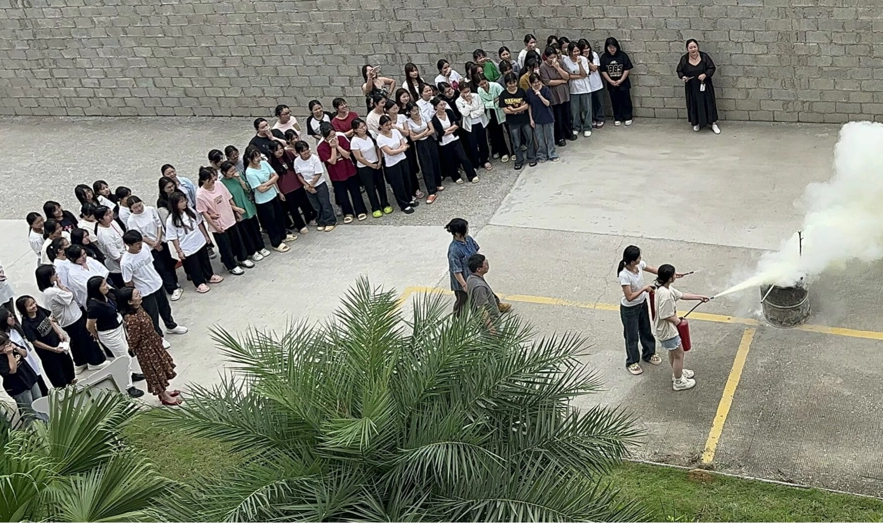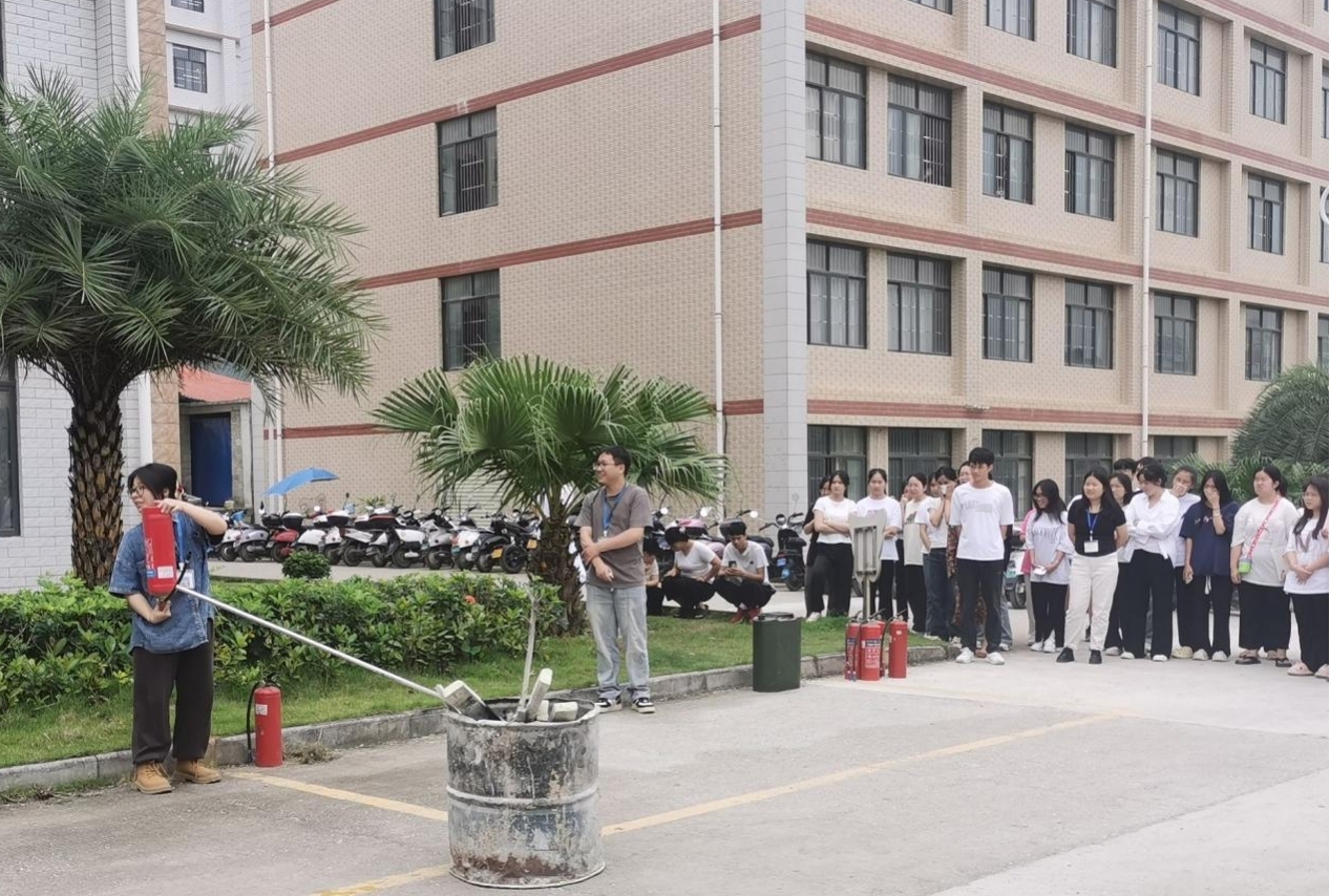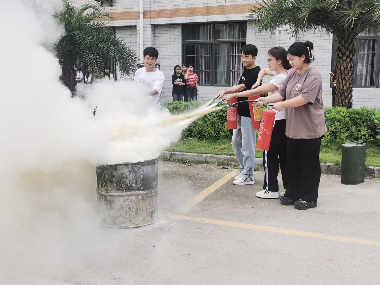(學(xué)生進行滅火器使用演練)