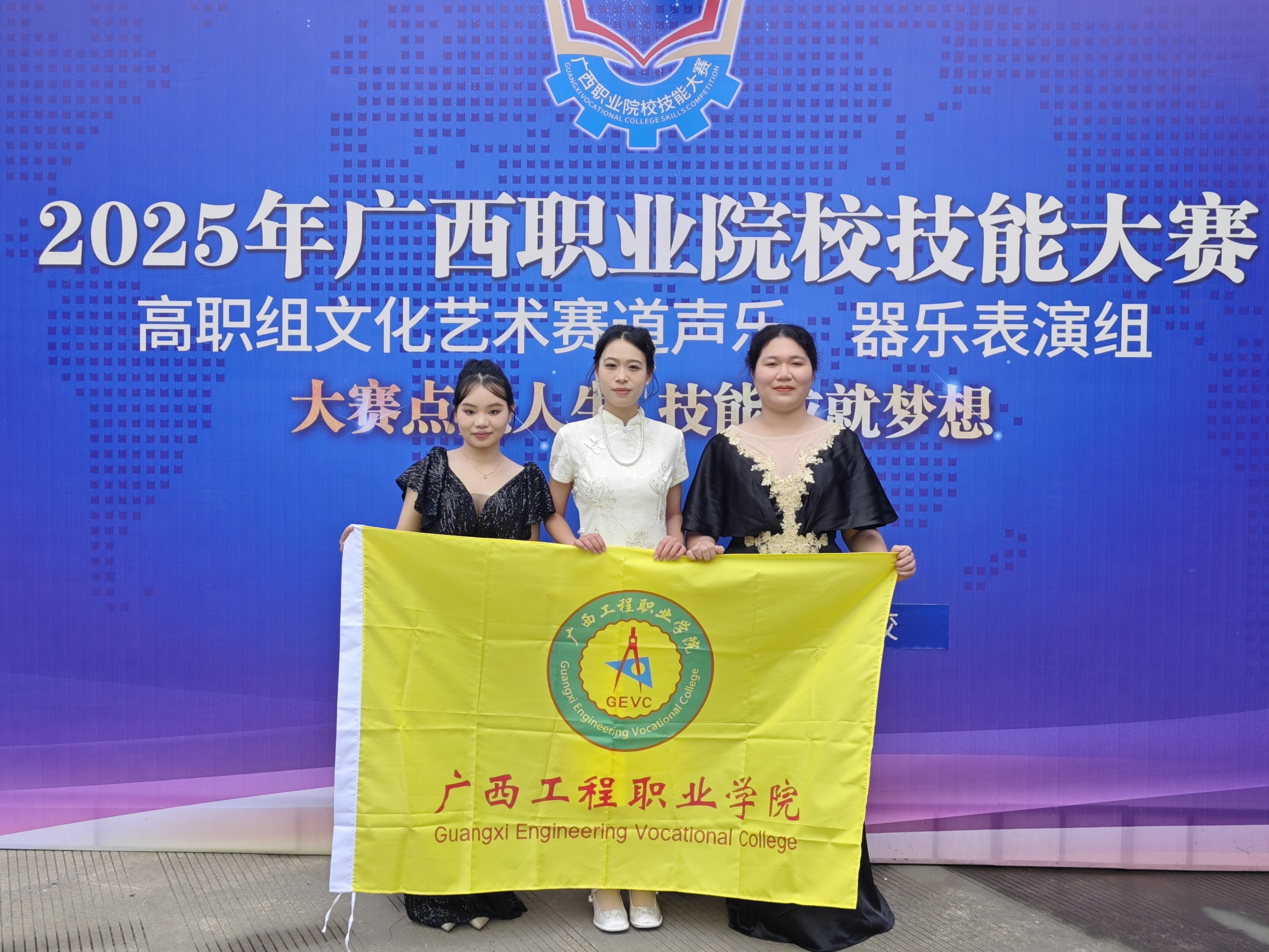 近日,2025 年廣西職業(yè)院校技能大賽高職組比賽圓滿(mǎn)落下帷幕,我院共派出三支參賽隊(duì),分別是,覃小密、何瑞禎老師指導(dǎo)的《從維也納到瑤族苗寨的旋律對(duì)話(huà)》參加藝術(shù)文化賽道二聲樂(lè)、器樂(lè)表演組及教育與劉世燕、彭媛老師指導(dǎo)的《童繪多彩仫佬,追尋文化創(chuàng)新》;李婷、唐麗老師指導(dǎo)的《嘹歌非遺 · 童心接力》參加體育賽道一幼兒教育技能組。在此次大賽中,我院師生憑借扎實(shí)的專(zhuān)業(yè)功底、出色的舞臺(tái)表現(xiàn)力和默契的團(tuán)隊(duì)協(xié)作,從眾多參賽隊(duì)伍中脫穎而出,斬獲一個(gè)“幼兒教育技能組”銅獎(jiǎng),為學(xué)校爭(zhēng)得了榮譽(yù)。