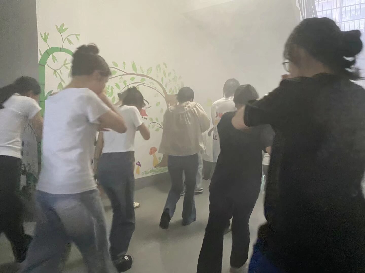 當日,急促的警報聲驟然響起,拉開演練序幕。各上課班級教師迅速組織學生,低姿、用手或者濕毛巾捂住口鼻,按照預定疏散路線有序地向安全區(qū)域撤離。短短幾分鐘,全體師生安全集結(jié),整個過程緊張有序,展現(xiàn)出良好的應急反應能力。?