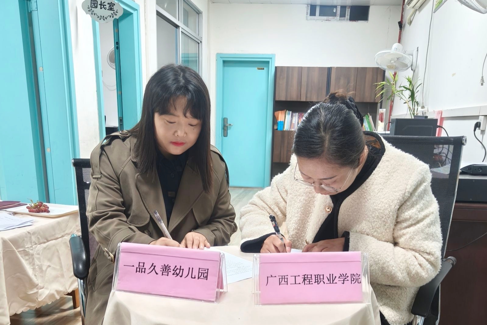 2025年12月5日,廣西工程職業(yè)學(xué)院教育學(xué)院與平果市一品久善幼兒園合作簽約儀式在幼兒園內(nèi)順利舉行。雙方正式確立合作關(guān)系,共同致力于學(xué)前教育人才的培養(yǎng)與實(shí)踐教學(xué)的深化。
