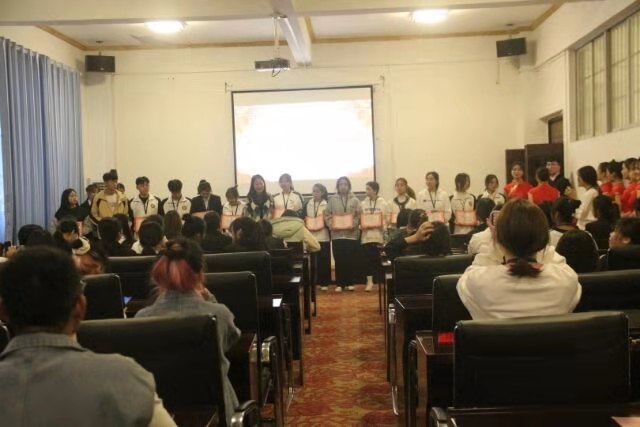 八、宣讀優(yōu)秀部門名單,由教育學(xué)院輔導(dǎo)員謝麗靜老師頒發(fā)證書。