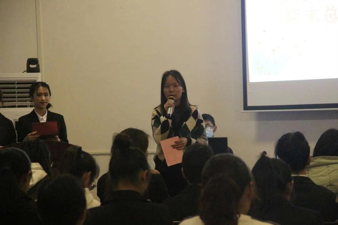 主持人宣讀優(yōu)秀部門名單,由教育學(xué)院輔導(dǎo)員謝麗靜老師頒發(fā)證書