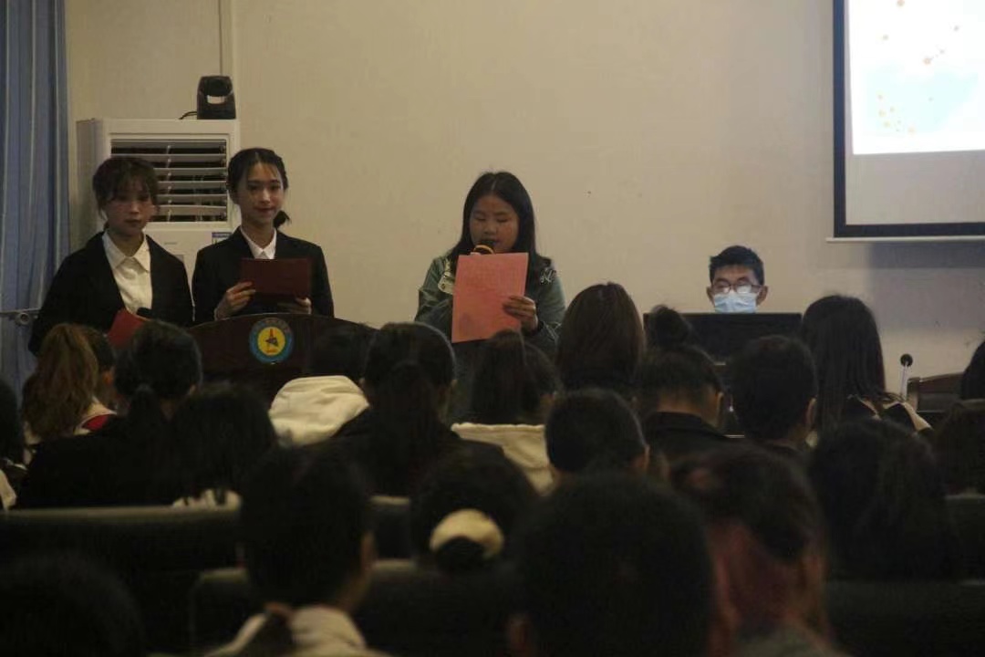 主持人宣讀優(yōu)秀主持人名單,由教育學(xué)院輔導(dǎo)員謝小玲老師頒發(fā)證書