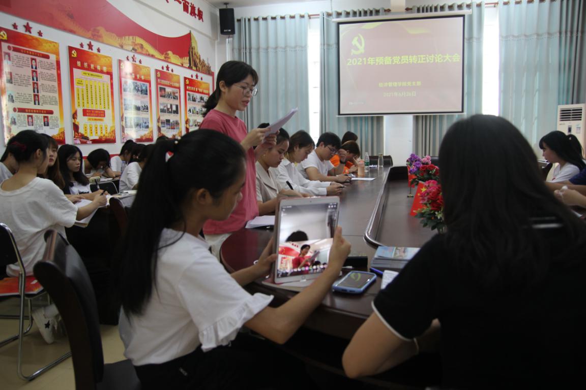 2021年6月26日下午,我支部于圖書館一樓黨員活動(dòng)室召開全體黨員大會(huì),討論關(guān)于施玉嬌等17名同志的轉(zhuǎn)正問題。會(huì)議由支部書記廖嬌同志主持。