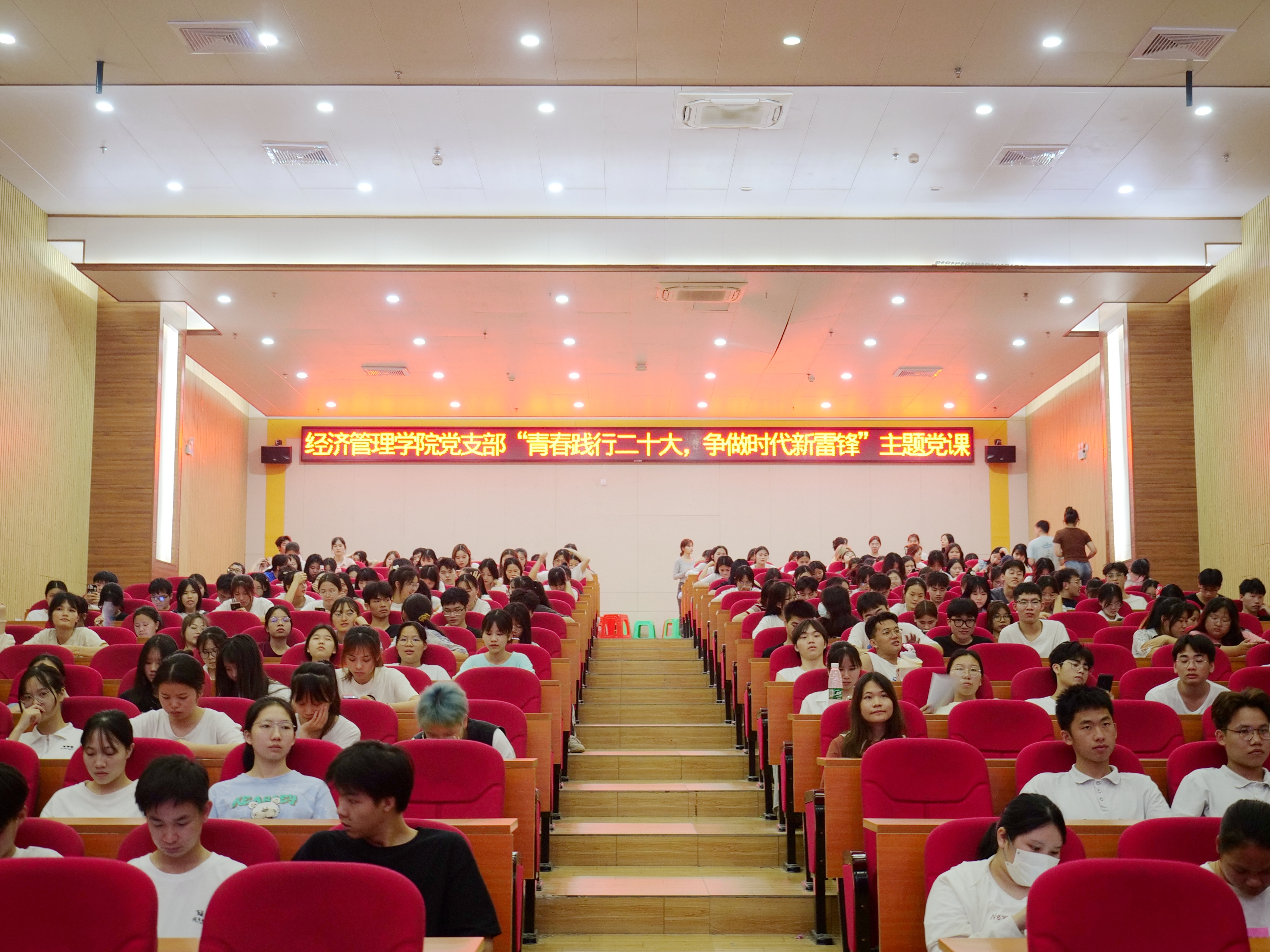 為深入學習貫徹黨的二十大精神和習近平總書記關于深入開展學雷鋒活動作出的重要指示精神,傳承和弘揚雷鋒精神,激勵黨員帶頭做雷鋒精神的踐行者、示范者。2023年3月23日晚上19點,經(jīng)濟管理學院黨支部在圖文信息大樓一樓學術報告廳開展了主題為“青春踐行二十大,爭做時代新雷鋒”的主題黨課教育活動。本次黨課由經(jīng)濟管理學院黨支部副書記廖嬌同志主講,參加此次黨課教育活動人員為支部教師黨員、入黨積極分子、入黨申請人共300余人。