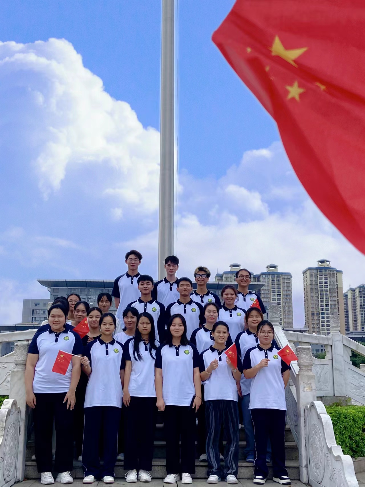 為了慶祝祖國盛世華誕,培養(yǎng)青年愛國主義情懷,系好人生第一??圩?,經(jīng)濟管理學院開展“我在工程與國旗有個合影”系列活動,向偉大祖送上我們最誠摯的祝福。在本次活動中,師生們自發(fā)選取學校內不同地點,選取不同的拍攝角度與國旗合影,帶著祝福表達了對祖國的真摯情感。這是學生們對祖國愛得深沉的表達、對紅色信仰堅定不移的信任、對新時代建功立業(yè)的禮贊、對實現(xiàn)偉大復興中國夢的憧憬。