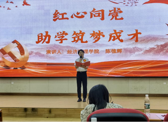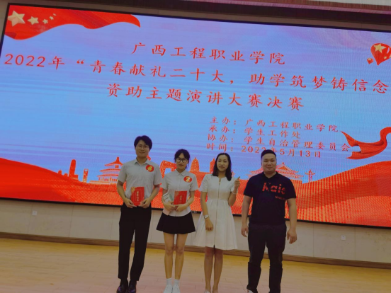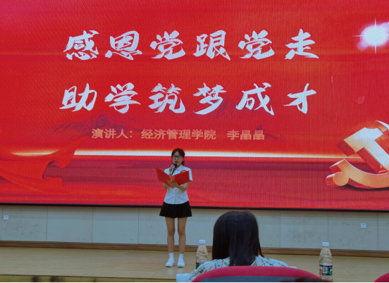 為向黨的二十大獻禮,深入拓展我院學生資助工作,加大學生資助政策宣傳力,培養(yǎng)受助學生愛黨愛國情懷和感恩意識,5月13日晚19:30,我院受助學生積極參加學校學生工作處在圖文信息大樓一樓學術報告廳舉辦的2022年“青春獻禮二十大,助學筑夢鑄信念”資助主題演講比賽。