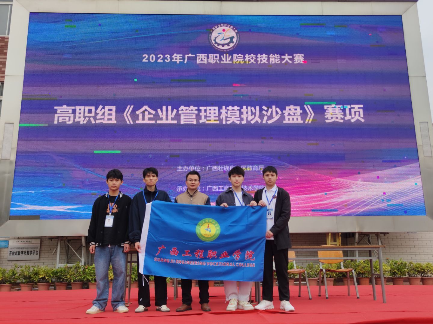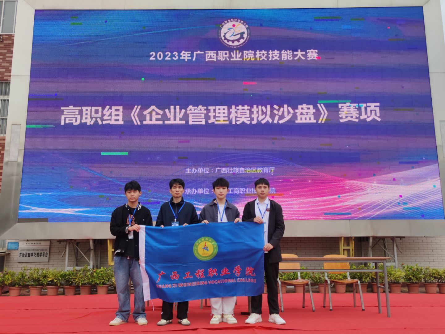 2023年3月16日,廣西職業(yè)院校技能大賽(高職組)《企業(yè)管理模擬沙盤》團體賽在廣西工商職業(yè)技術(shù)學(xué)院舉行,我院黃金俊老師帶隊2021級凌偉杰、黃世云、黃偉澤、曾祥斯4名同學(xué)參加了此次比賽。