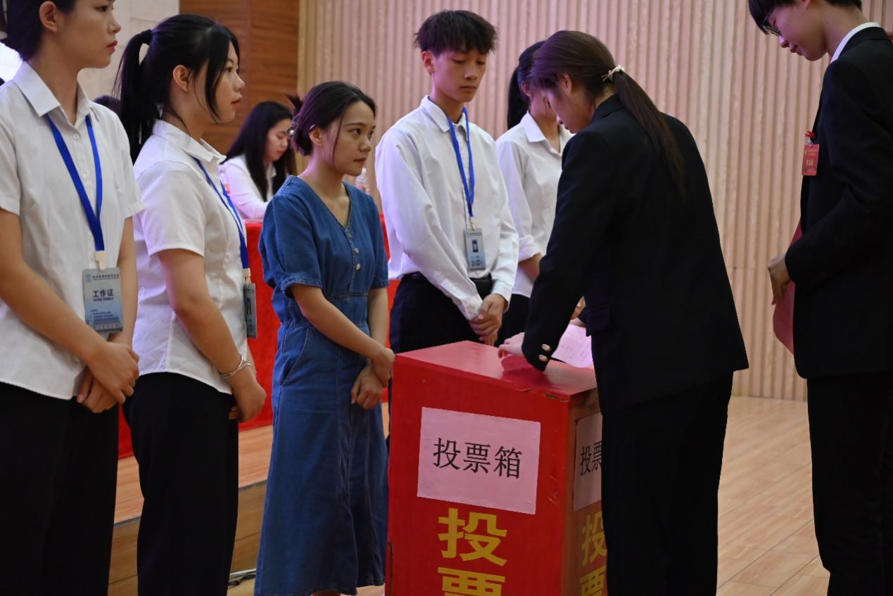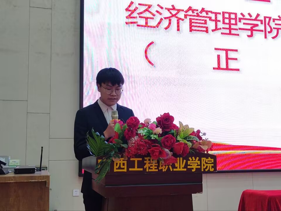 經(jīng)濟管理學院楊尚晶宣讀廣西工程職業(yè)學院經(jīng)濟管理學院第十五次學生代表大會總監(jiān)票人、監(jiān)票人、總計票人、計票人名單(草案)