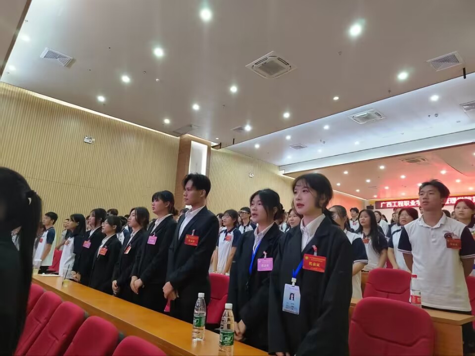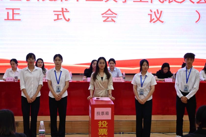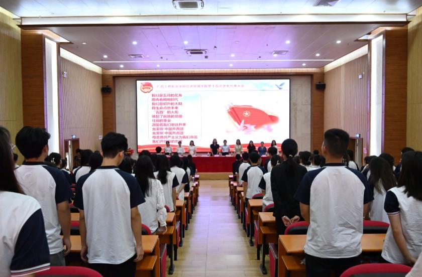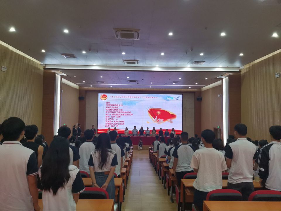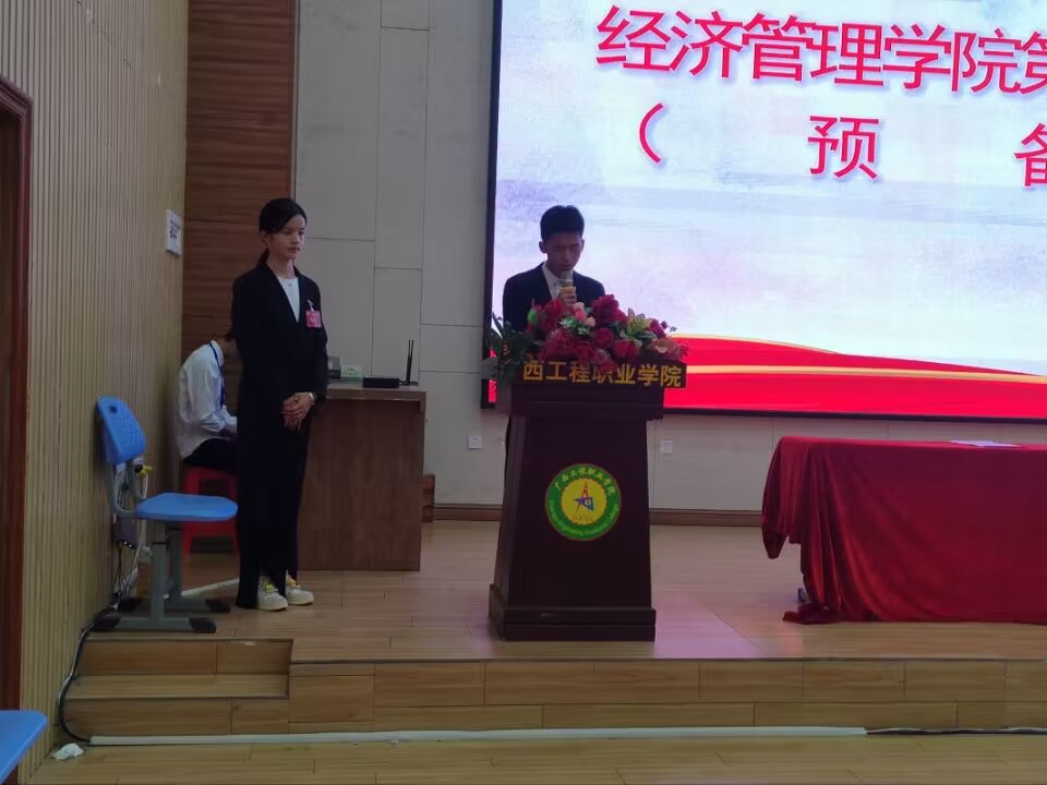 在慷慨激昂的國歌聲中,廣西工程職業(yè)學院第十五次學生代表大會正式會議拉開了帷幕。蒞臨本次大會的領(lǐng)導和嘉賓:校團委副書記李麗清、經(jīng)濟管理學院黨支部副書記廖嬌、經(jīng)濟管理學院分團委書記李東英、經(jīng)濟管理學院輔導員凌美光老師、楊尚晶老師、覃艷云老師、潘冬玲老師、陳桃老師、謝彩英老師、付艷春老師、葉文思老師,經(jīng)濟管理學院第十五屆學生會候選人及各班級代表團代表出席會議。
