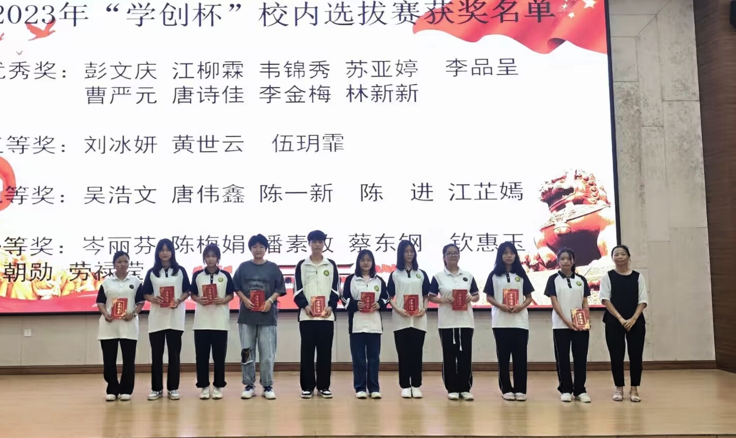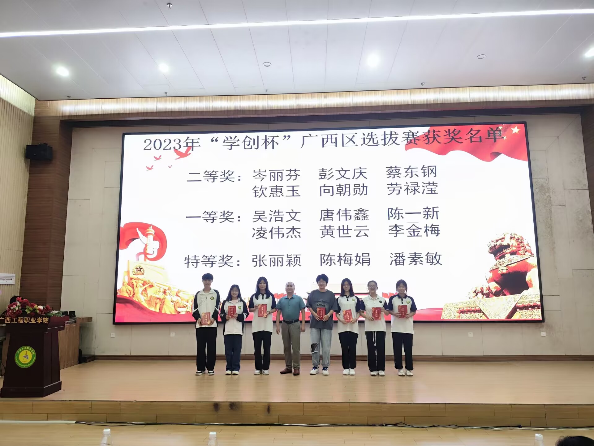 “2023年“學(xué)創(chuàng)杯”廣西區(qū)選拔賽”,學(xué)校紀(jì)委書記、副校長彭高彬?yàn)楂@獎(jiǎng)?wù)哳C發(fā)