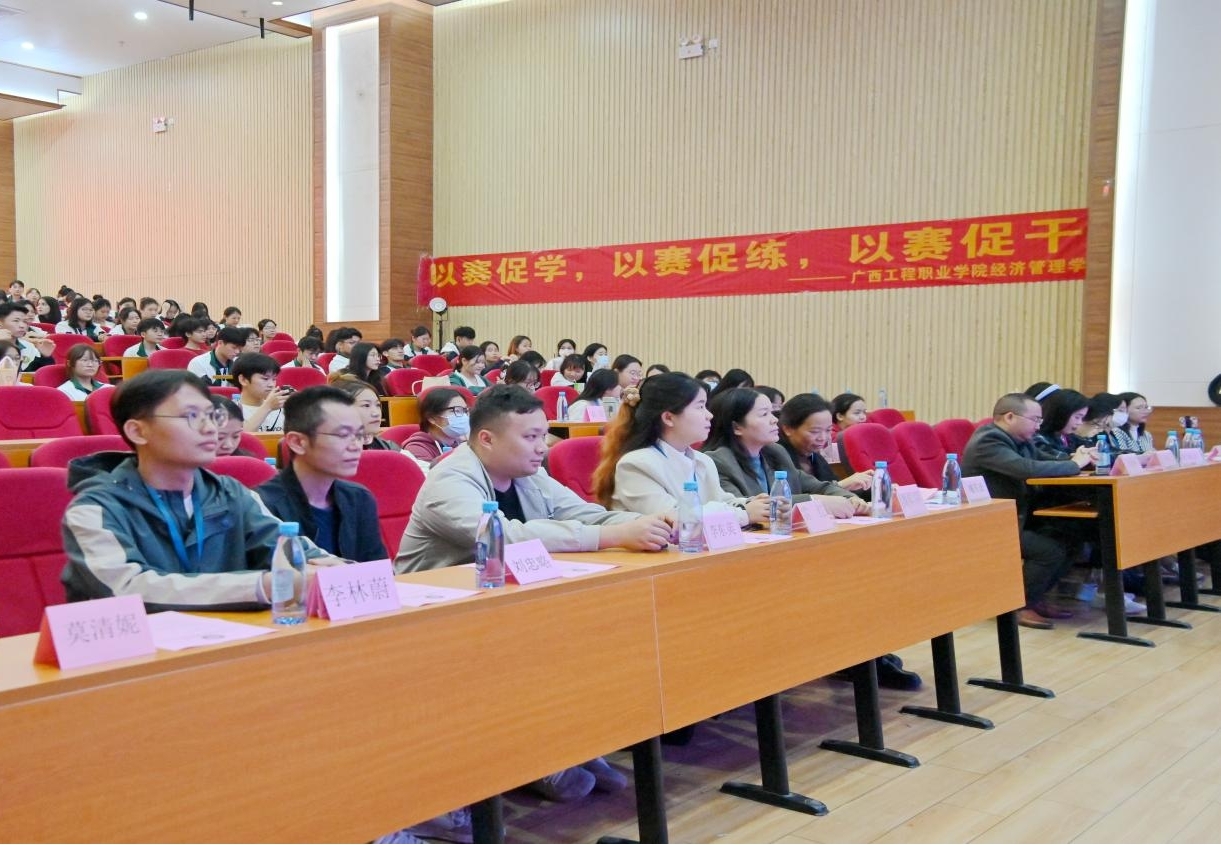 出席本次比賽的現(xiàn)場(chǎng)領(lǐng)導(dǎo)、老師:學(xué)校紀(jì)委書記、副校長(zhǎng)彭高彬,學(xué)校黨委委員、經(jīng)濟(jì)管理學(xué)院黨支部書記、院長(zhǎng)龐英連,經(jīng)濟(jì)管理學(xué)院黨支部副書記潘翠萍,經(jīng)濟(jì)管理學(xué)院辦公室主任雷紅,經(jīng)濟(jì)管理學(xué)院學(xué)生科長(zhǎng)李東英,經(jīng)濟(jì)管理學(xué)院工商管理教研室主任劉忠略,以及經(jīng)濟(jì)管理學(xué)院全體專任教師、輔導(dǎo)員到場(chǎng)觀看比賽。