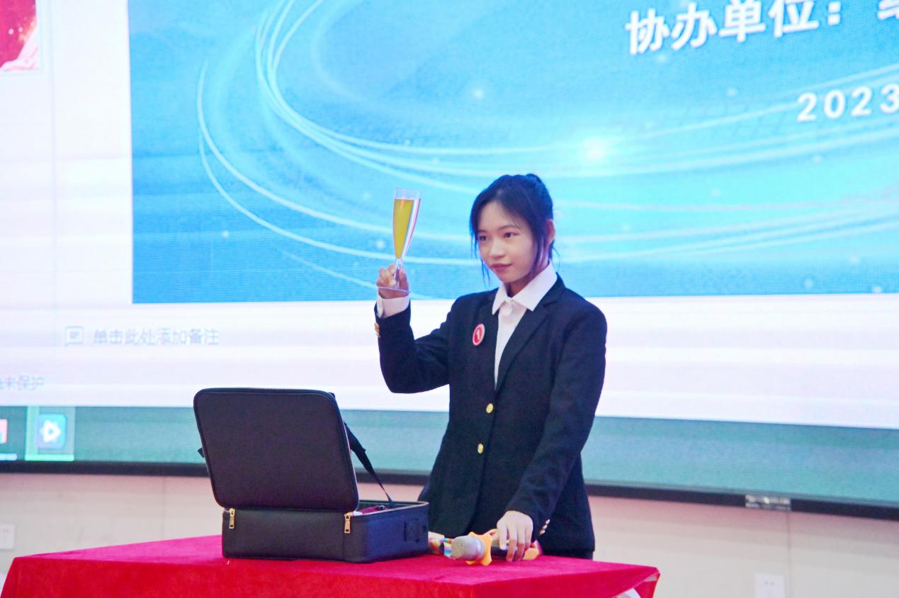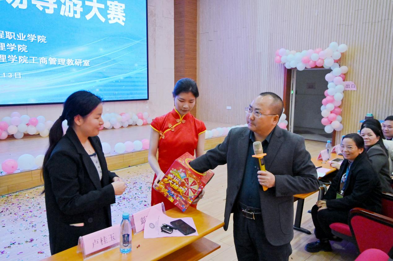 經(jīng)濟(jì)管理學(xué)院辦公室主任雷紅為獲得優(yōu)秀獎(jiǎng)的選手頒獎(jiǎng)