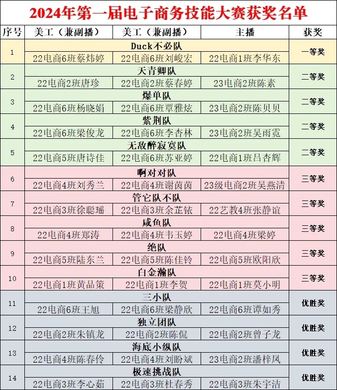 經(jīng)過激烈的比拼,各位參賽選手以提高電子商務(wù)專業(yè)技能為目的,賽出水平、賽出風(fēng)采,取得了優(yōu)異的成績。辦公室主任雷紅宣布第一屆電子商務(wù)技能比賽獲獎名單。