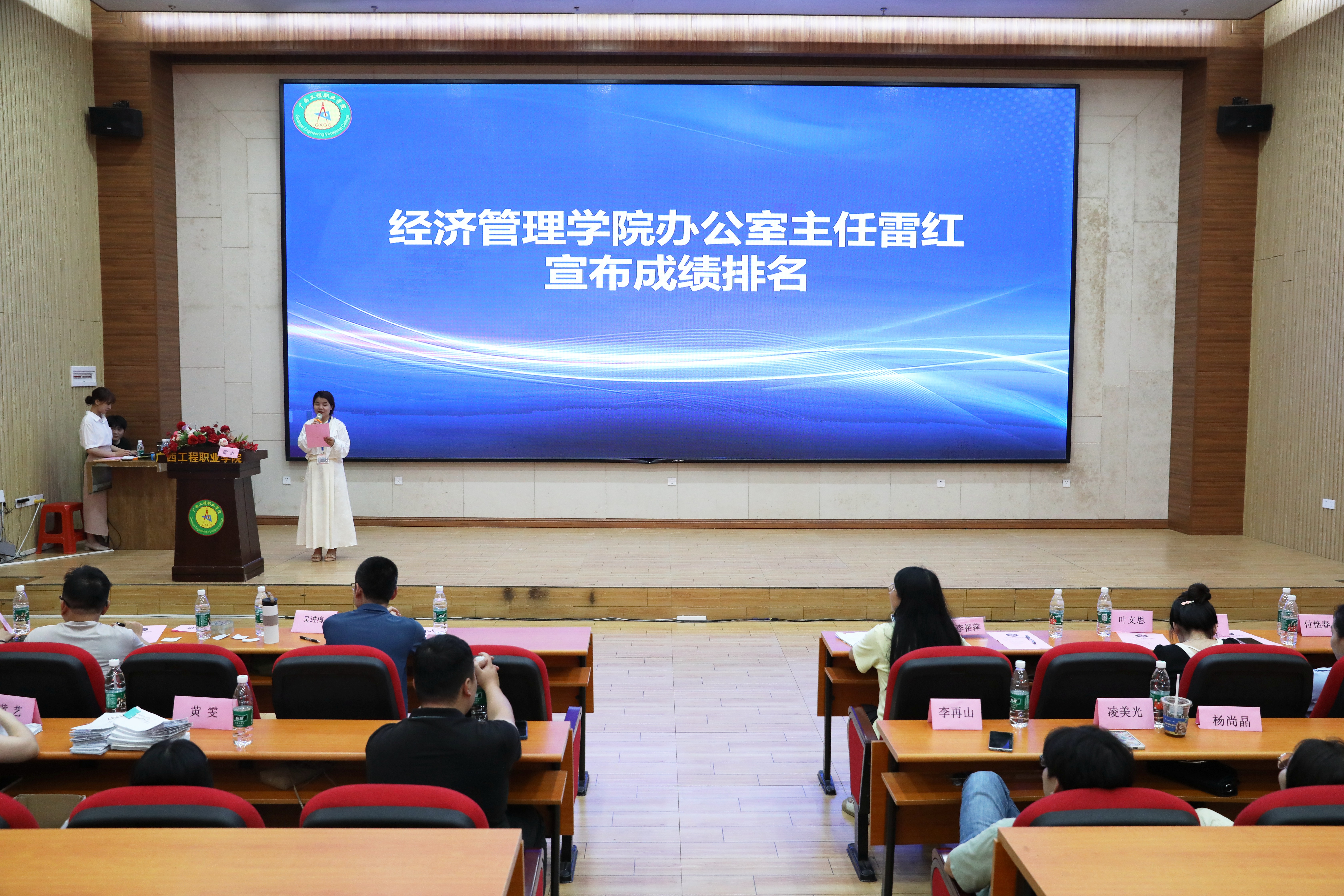 經(jīng)濟(jì)管理學(xué)院學(xué)生科長李東英、辦公室主任雷紅、工商管理教研室主任劉忠略、學(xué)校財務(wù)處李裕萍老師以及學(xué)院全體教師出席比賽現(xiàn)場。
