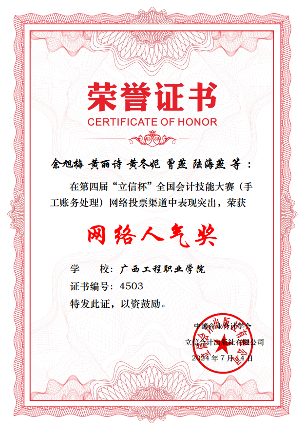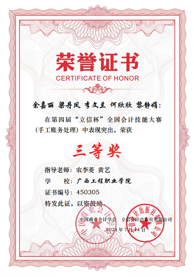 2024年7月18日,第四屆“立信杯”全國(guó)會(huì)計(jì)技能大賽(手工賬務(wù)處理)圓滿落幕,上百所院校參加此次競(jìng)賽。為提高學(xué)生的專業(yè)技能水平和實(shí)戰(zhàn)經(jīng)驗(yàn),經(jīng)濟(jì)管理學(xué)院選派2022級(jí)大數(shù)據(jù)與會(huì)計(jì)、大數(shù)據(jù)與財(cái)務(wù)管理專業(yè)的彭怡、丁乙珂、余嘉麗、余旭梅等25位學(xué)生,組成5個(gè)參賽小組參加此次大賽賽。經(jīng)過激烈角逐,學(xué)生參賽作品脫穎而出,取得良好成績(jī),其中榮獲二等獎(jiǎng)1項(xiàng),三等獎(jiǎng)2項(xiàng),優(yōu)勝獎(jiǎng)2項(xiàng)。同時(shí)經(jīng)過激烈的網(wǎng)絡(luò)投票,有1組視頻作品被評(píng)選為“網(wǎng)絡(luò)人氣獎(jiǎng)”。