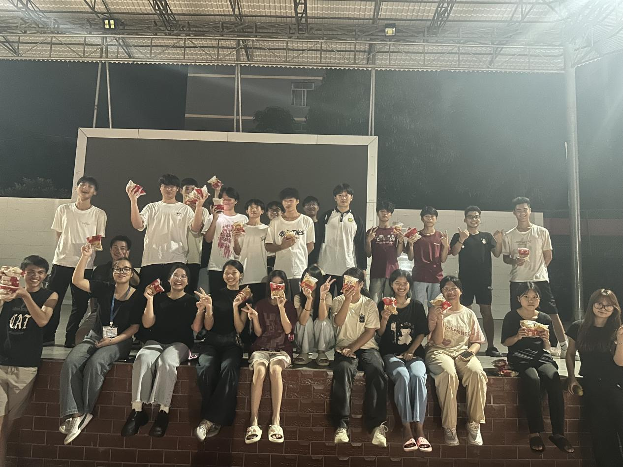 晚上,校園跑道上歡聲笑語(yǔ)不斷,學(xué)校精心準(zhǔn)備的月餅和水果,每一塊月餅都承載著老師對(duì)學(xué)生們的殷切期望和滿滿祝福。同學(xué)們圍坐一起,共賞圓月,品嘗著這份來(lái)自老師的特別禮物,臉上洋溢著幸福與感激的笑容。水果的甜蜜與節(jié)日的喜慶交織在一起,讓整個(gè)校園充滿了家的溫暖。