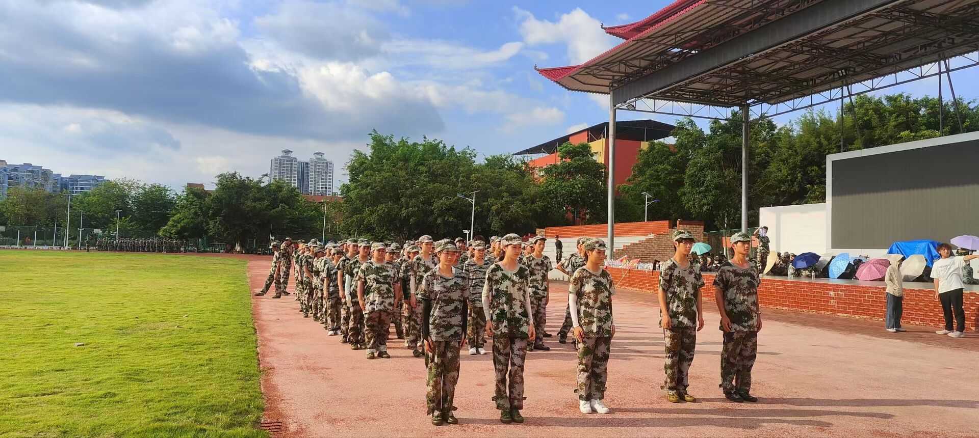 當圓月高掛璀璨夜空,晨曦降下,夜晚的軍訓表演亦是青春的波瀾。