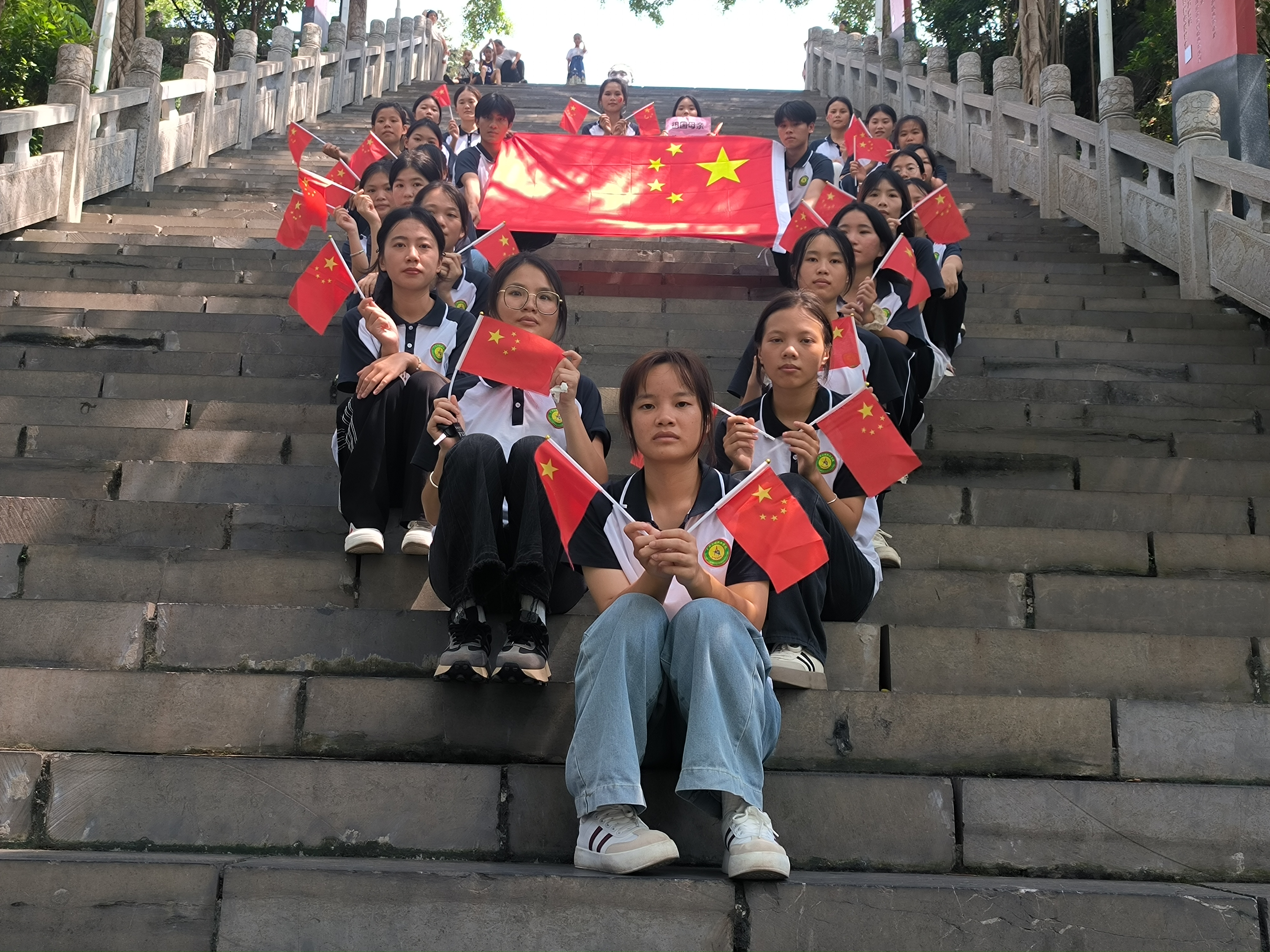 清澈的愛,只為中國!懷著滿滿的愛國熱情,同學(xué)們早早地就來到魯班廣場前集合。在團(tuán)總支的組織下,同學(xué)們合聲高唱歌曲《我和我的祖國》,聲情并茂朗誦詩歌《祖國萬歲》,一字一句都傳達(dá)著對祖國清澈的愛。通過擺字方陣的形式擺出了“中國”“75”的字樣,向祖國母親獻(xiàn)上最真摯的祝福。