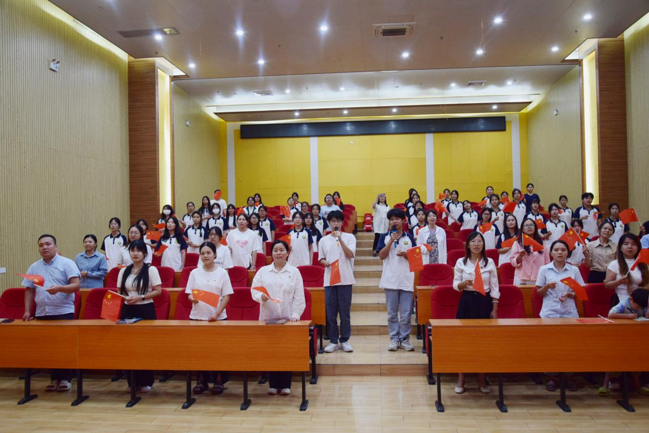 組織學(xué)院師生共同演繹愛國歌曲。由凌春雨和覃業(yè)凱同學(xué)領(lǐng)唱的《我愛你中國》深情而激昂,歌聲中充滿了對祖國的熱愛與祝福,將現(xiàn)場氣氛推向高潮。