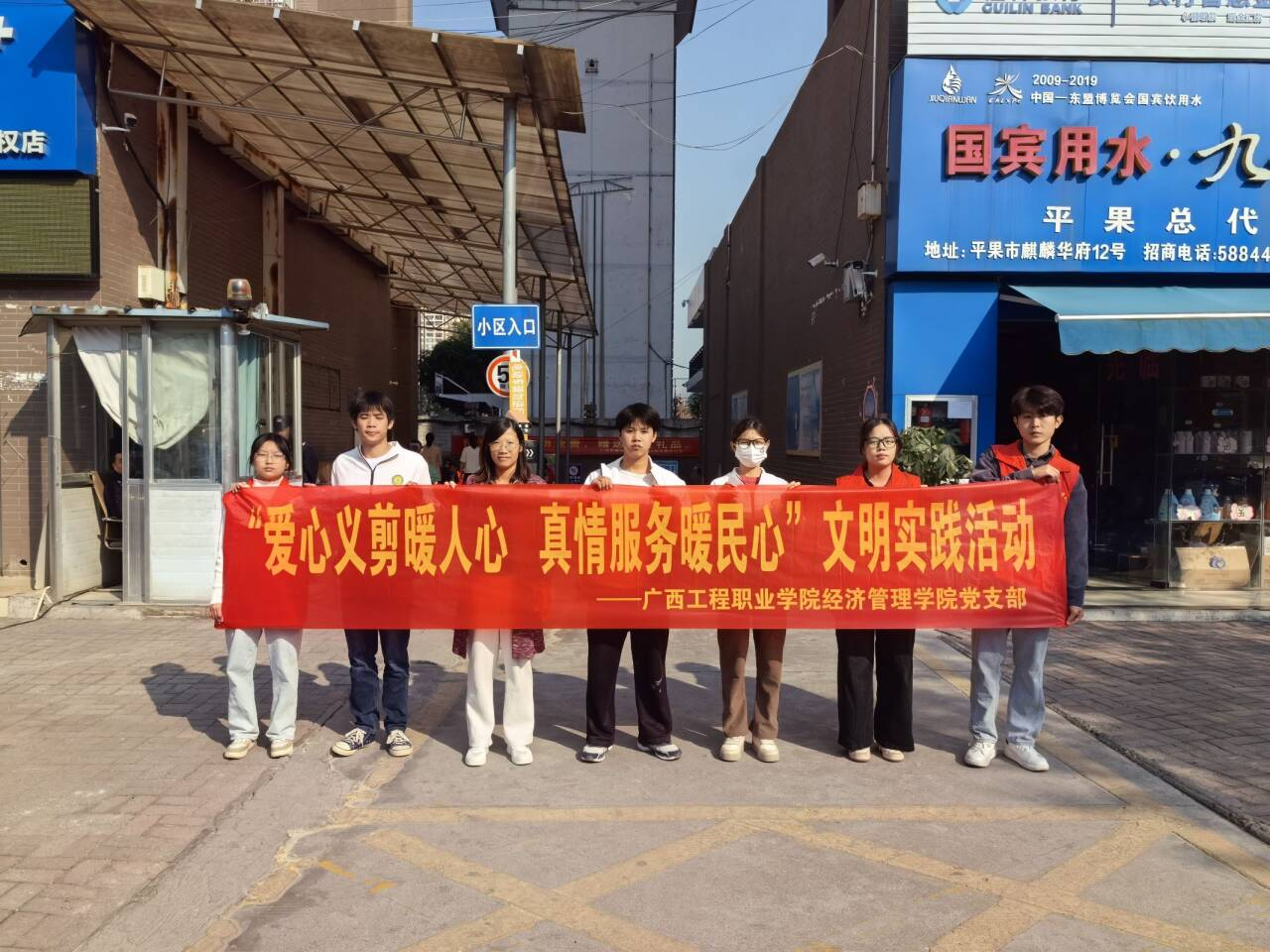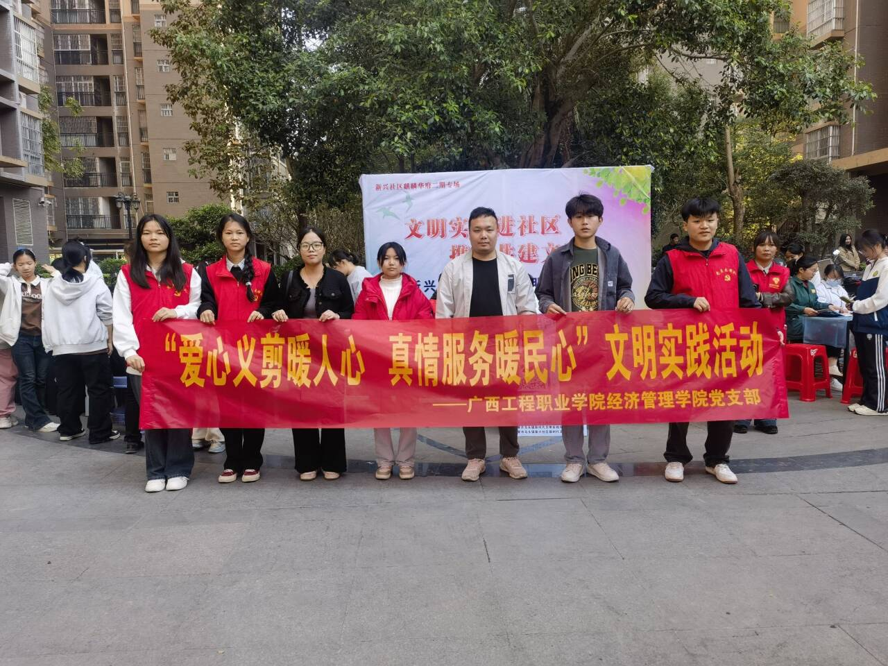 學(xué)校作為社區(qū)網(wǎng)格中的成員單位,積極參與此次活動(dòng),經(jīng)濟(jì)管理學(xué)院根據(jù)安排,組織師生代表前往平果市麒麟華府小區(qū)進(jìn)行愛(ài)心理發(fā)活動(dòng)。