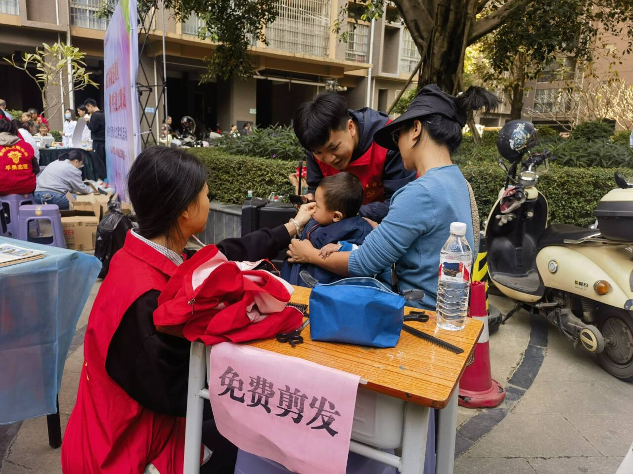 12月1日上午,學(xué)院黨支部書記覃清香,支部宣傳委員李東英,以及莫清妮老師帶領(lǐng)學(xué)生代表們前往麒麟華府一期、二期小區(qū)開(kāi)展服務(wù)活動(dòng)。在社區(qū)現(xiàn)場(chǎng),具有理發(fā)技能的老師、同學(xué)們發(fā)揮自己的才能,為麒麟華府小區(qū)內(nèi)二十余名群眾提供了理發(fā)、修剪發(fā)型的服務(wù),尤其是2024級(jí)大數(shù)據(jù)與會(huì)計(jì)專業(yè)2班的何深吉同學(xué)理發(fā)手藝贏得在場(chǎng)群眾的一致好評(píng),前來(lái)咨詢理發(fā)的人員絡(luò)繹不絕。