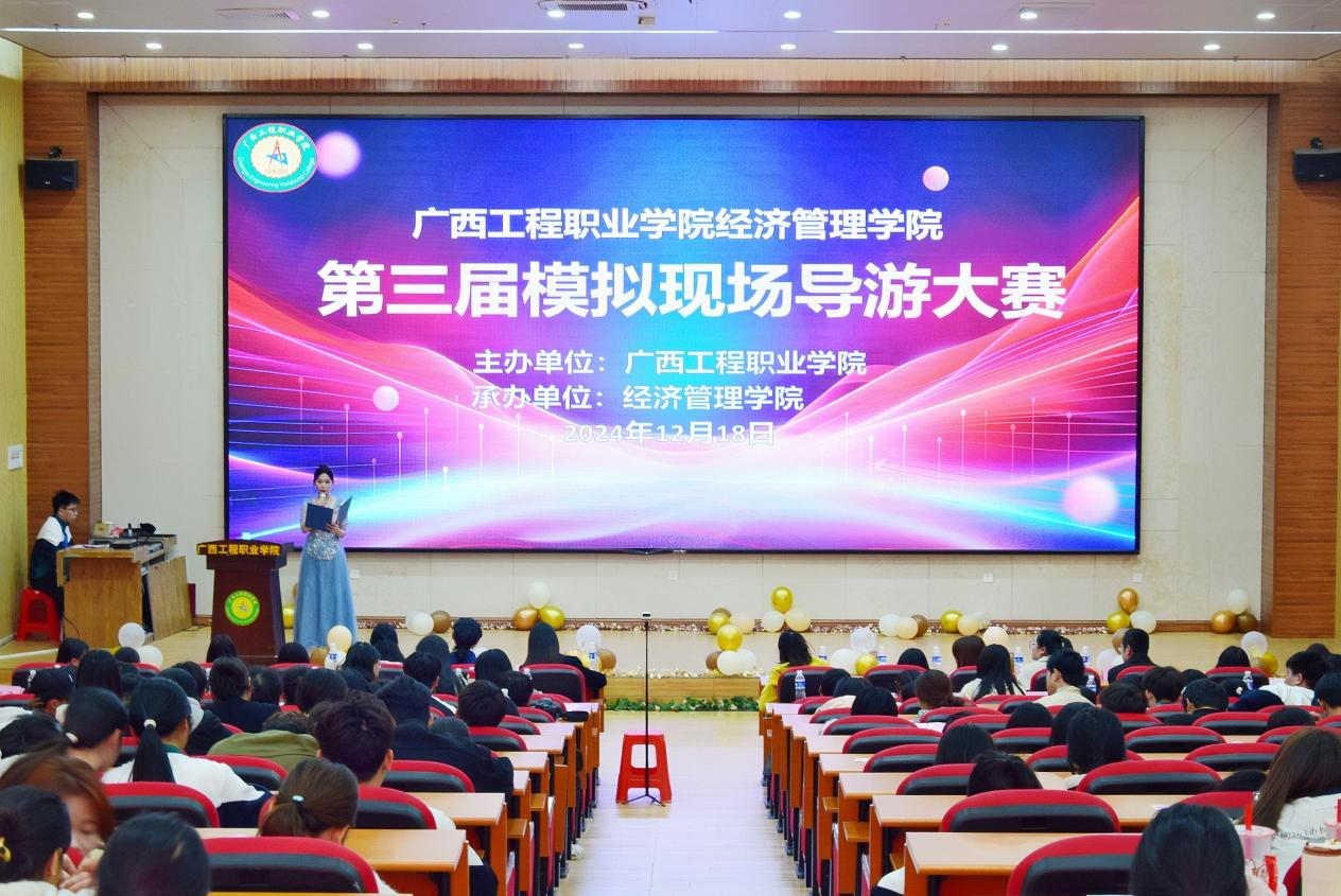 2024年12月18日,經(jīng)濟(jì)管理學(xué)院在學(xué)校圖文信息大樓一樓報(bào)告廳舉行第三屆“魅力導(dǎo)游,智慧領(lǐng)航”模擬現(xiàn)場(chǎng)導(dǎo)游大賽。本次大賽旨在通過(guò)展現(xiàn)導(dǎo)游風(fēng)采、以賽促學(xué)、以賽帶訓(xùn),激勵(lì)學(xué)生不斷加強(qiáng)業(yè)務(wù)知識(shí)的學(xué)習(xí)和技能訓(xùn)練,培養(yǎng)符合社會(huì)發(fā)展需要的高質(zhì)量的旅游服務(wù)人才。