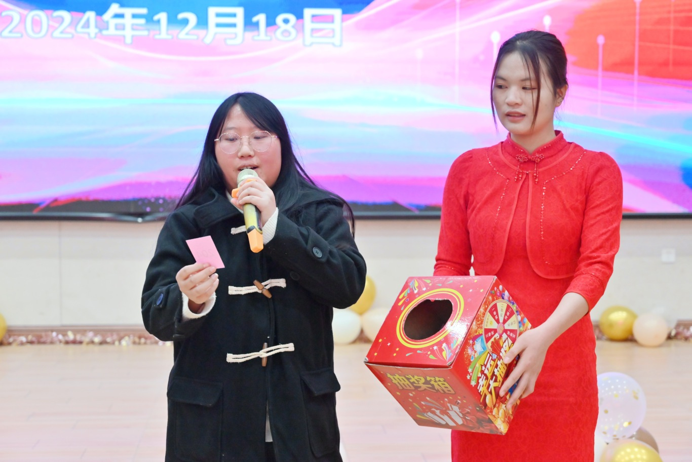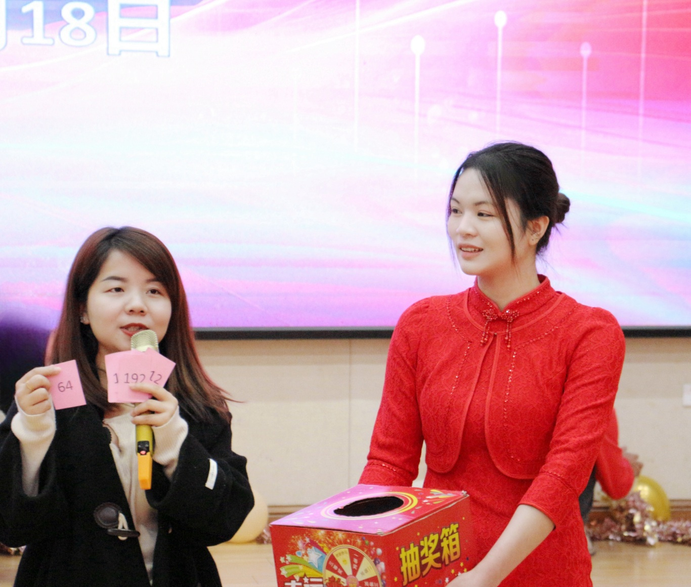圖為財(cái)務(wù)處老師李裕萍現(xiàn)場(chǎng)抽取6名幸運(yùn)兒