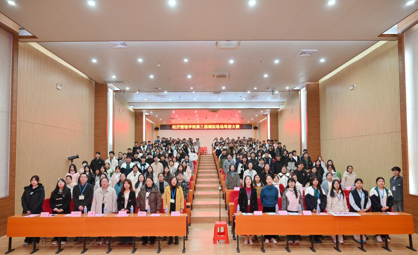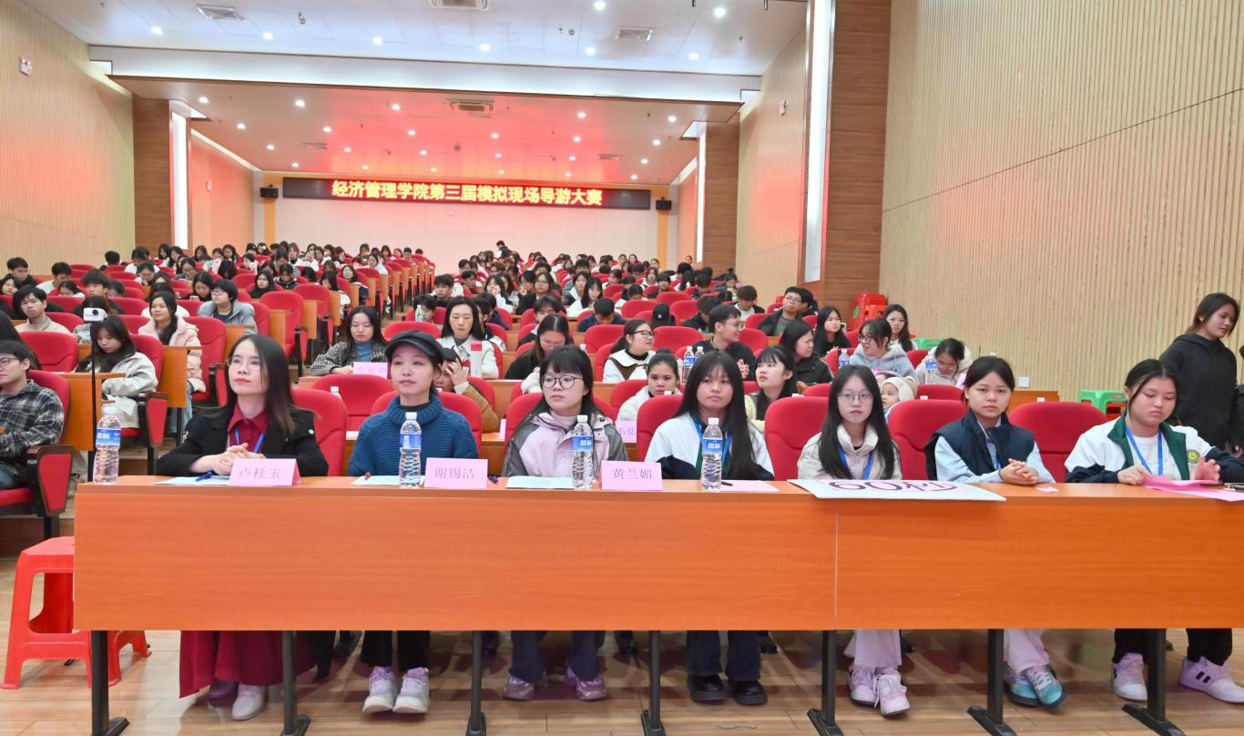 圖為經(jīng)濟(jì)管理學(xué)院第三屆模擬導(dǎo)游大賽現(xiàn)場(chǎng)