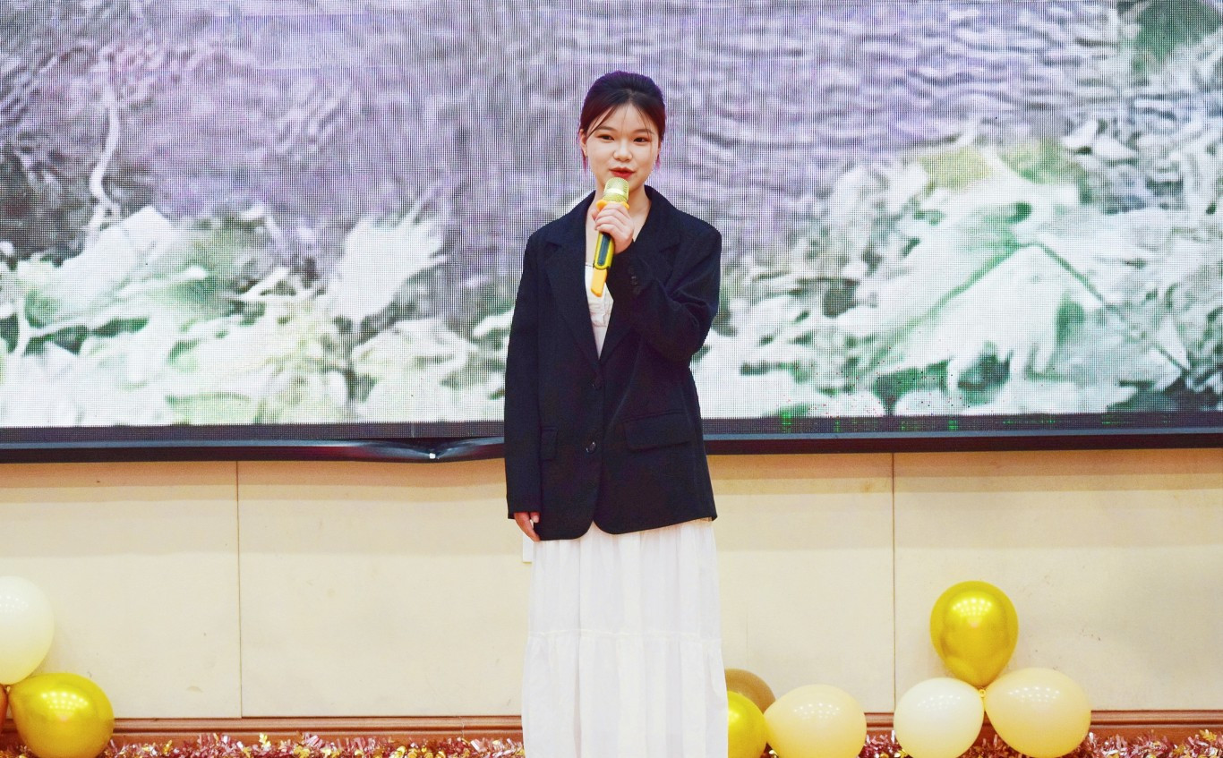 圖為學(xué)院黨支部副書記潘翠萍宣布比賽獲獎(jiǎng)名次