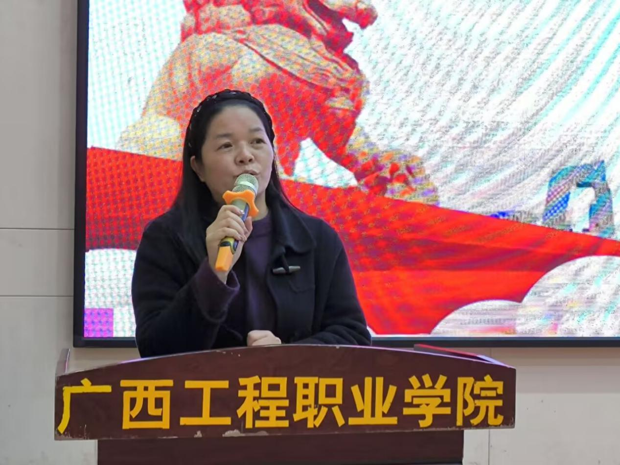 圖為學(xué)院黨支部副書記潘翠萍主持圖片