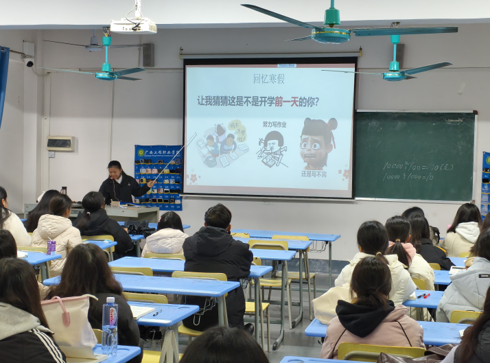 各年級輔導(dǎo)員及任課教師結(jié)合熱門國漫IP《哪吒之魔童鬧?!?,以太乙真人的智慧導(dǎo)師形象,將“我命由我不由天”的熱血勇敢精神注入教育實踐,從學(xué)情分析、誠信考試、安全管理、心理健康、防詐騙、春季傳染病預(yù)防等多個方面展開講解,助力學(xué)生實現(xiàn)認(rèn)知轉(zhuǎn)換、目標(biāo)重構(gòu),促進學(xué)生行為習(xí)慣養(yǎng)成。2024級輔導(dǎo)員結(jié)合上一學(xué)期學(xué)習(xí)和入學(xué)適應(yīng)情況,從學(xué)業(yè)規(guī)劃與職業(yè)生涯規(guī)劃的角度對2024級學(xué)生進行引導(dǎo),以“只要敢于改變,就會有無限可能”的燃情寄語收束,喚醒學(xué)生學(xué)業(yè)精進、同窗共進、自我革新的成長內(nèi)驅(qū)力,幫助同學(xué)們迅速適應(yīng)新學(xué)期的學(xué)習(xí)生活,以積極飽滿的狀態(tài)迎接新的挑戰(zhàn)。