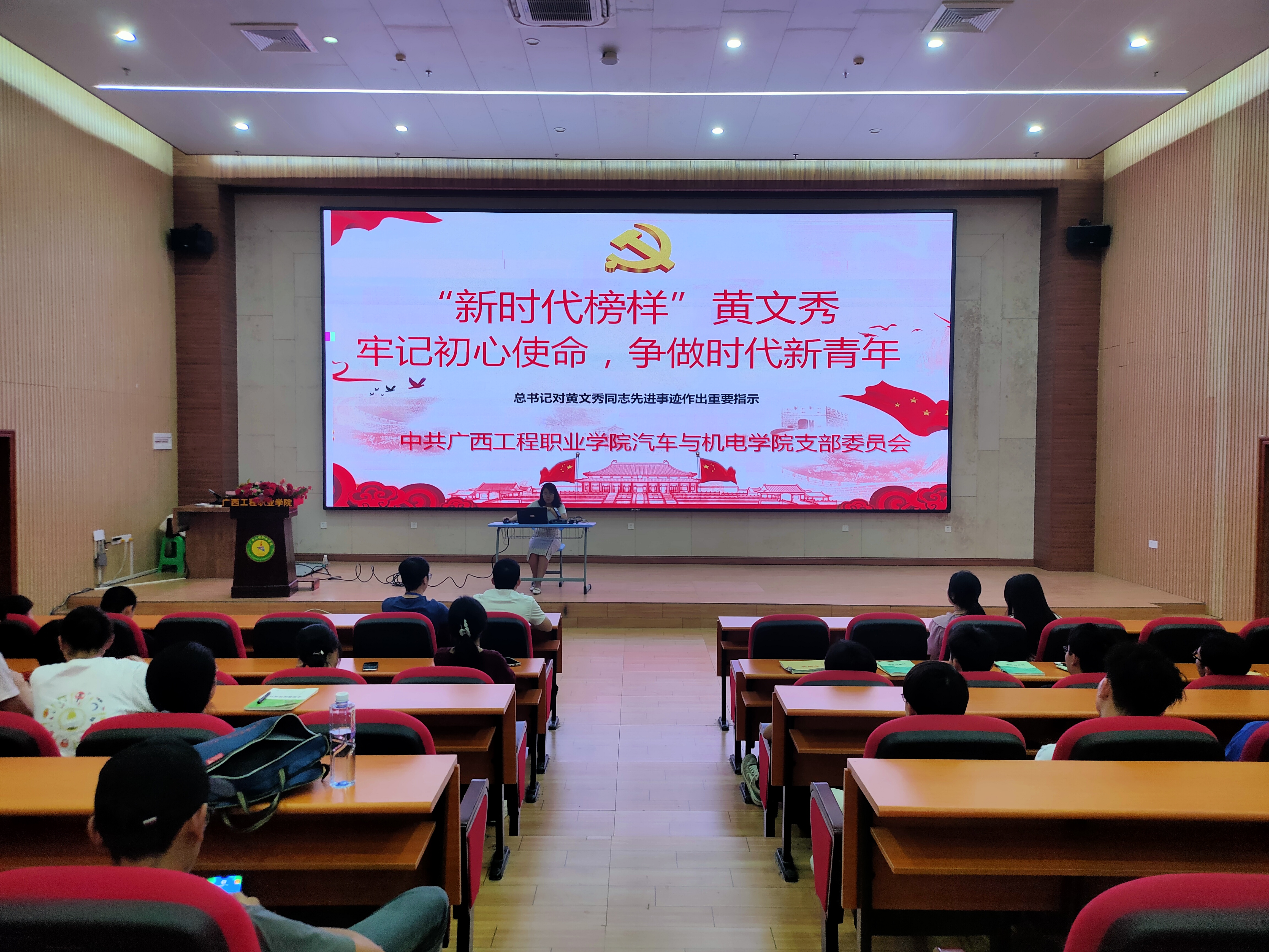 在黨課學(xué)習(xí)會上,汽車與機電學(xué)院黨支部副書記鄧鎮(zhèn)連同志作了《“新時代榜樣”黃文秀先進事跡》專題宣講,她強調(diào)榜樣的力量是無窮的,廣大黨員和青年要深刻學(xué)習(xí)領(lǐng)會習(xí)近平總書記對黃文秀同志先進事跡重要指示的精神,時刻牢記“走得再遠、走到再光輝的未來,也不能忘記走過的過去,不能忘記為什么出發(fā)”,自覺以黃文秀同志為榜樣,不忘初心、牢記使命,勇于奉獻擔(dān)當,在新時代的長征路上做出新的更大貢獻。