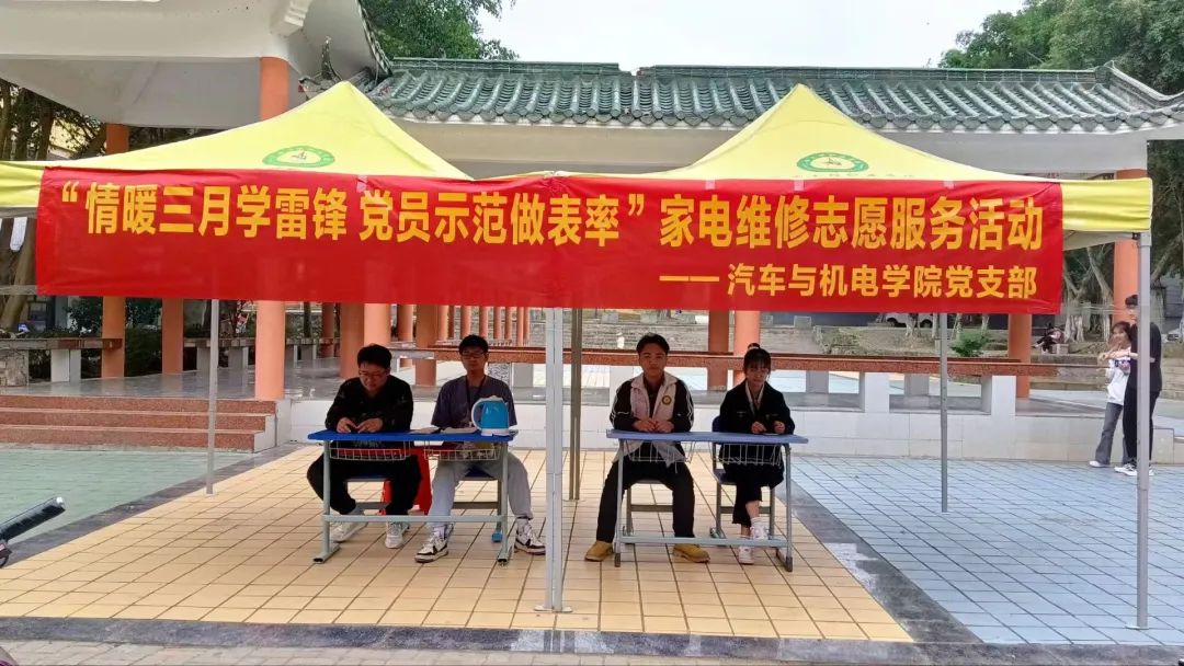 為推進(jìn)學(xué)校“學(xué)雷鋒”活動的深入開展,進(jìn)一步培育和踐行社會主義核心價值觀,大力弘揚(yáng)雷鋒精神和志愿精神,推動形成全院崇尚志愿服務(wù)、熱心志愿服務(wù)的良好風(fēng)尚。2023年3月21日至25日,廣西工程職業(yè)學(xué)院汽車與機(jī)電學(xué)院黨支部和團(tuán)總支聯(lián)合開展“我為群眾辦實(shí)事”義務(wù)家電維修活動。本次維修的家電主要為吹風(fēng)機(jī)、熱水壺、臺燈、小型電風(fēng)扇等。
