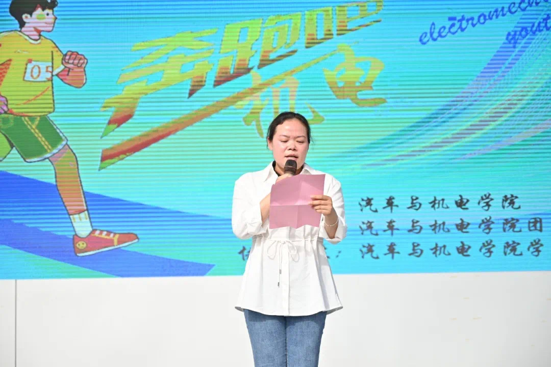 汽車與機(jī)電學(xué)院副院長梁欣欣致辭,她指出,學(xué)院的發(fā)展離不開每一位師生的努力與奉獻(xiàn),希望通過豐富多彩的趣味項目,增進(jìn)師生情誼、凝聚團(tuán)隊力量,在歡聲笑語中傳遞機(jī)電學(xué)子的拼搏精神與青春活力。最后,她強(qiáng)調(diào),一要安全為先,活動過程中,全體參賽者遵守規(guī)則、量力而行,工作人員務(wù)必做好安全保障,確?;顒禹樌_展;二要友誼為重,希望大家秉承“友誼第一,比賽第二”的宗旨,以團(tuán)結(jié)協(xié)作展現(xiàn)機(jī)電風(fēng)采,以文明競技傳遞校園溫度。