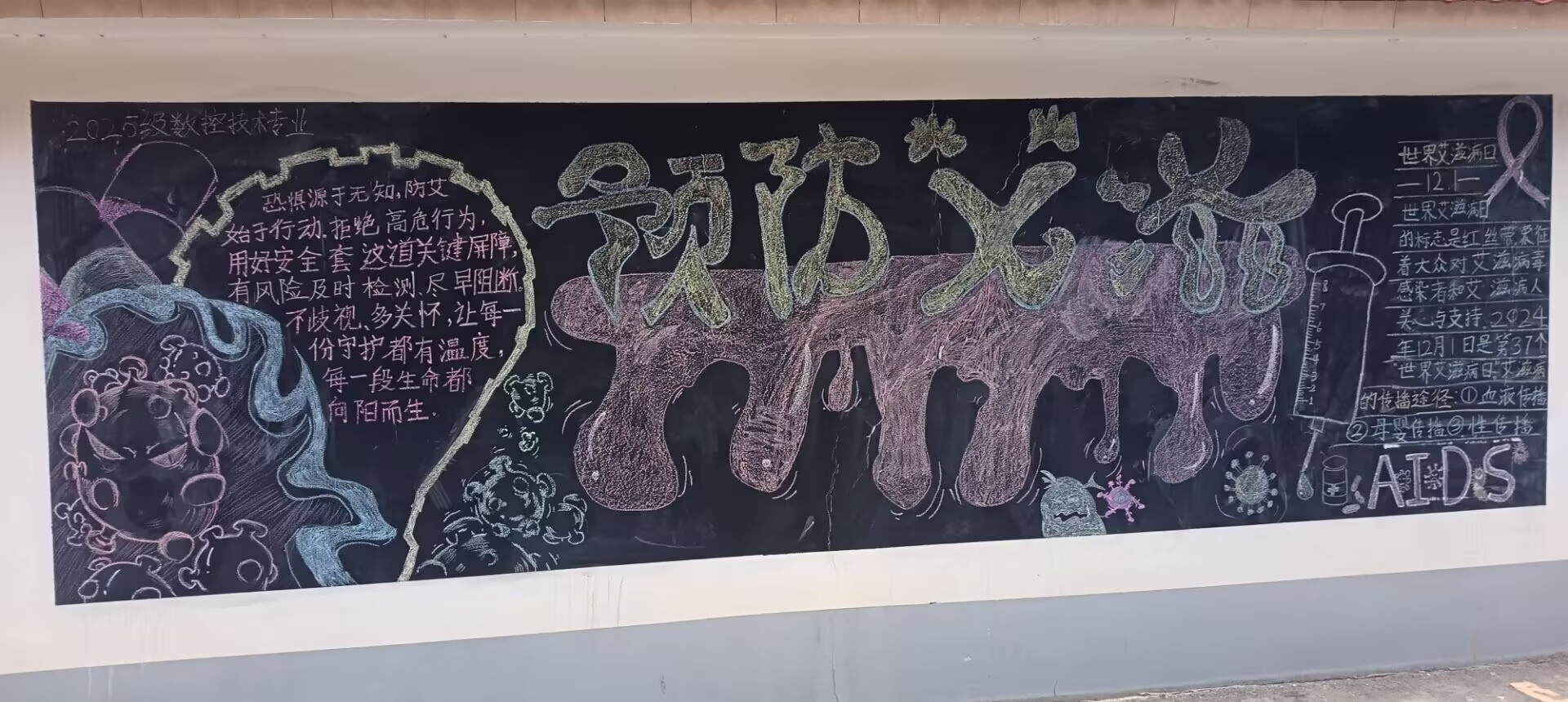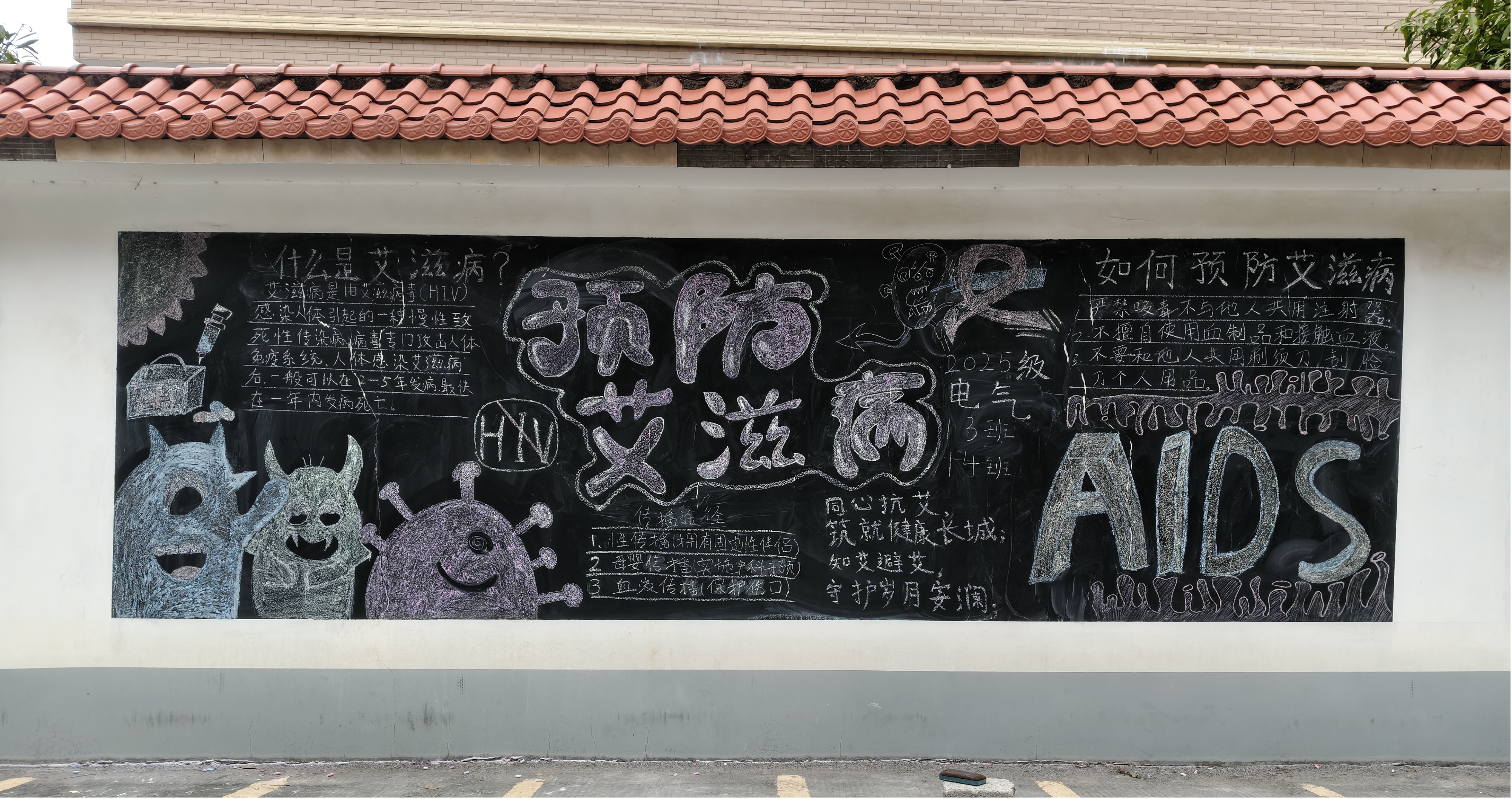 為普及防艾知識、提升學(xué)生健康安全意識,營造積極的校園防艾氛圍,汽車與機電學(xué)院于2025年12月4日-9日舉辦預(yù)防艾滋病宣傳教育主題黑板報,全院各班級積極響應(yīng)參與?;顒右蟀鍒髢?nèi)容科學(xué)準確、形式創(chuàng)新多樣,引導(dǎo)學(xué)生正確認識艾滋病、消除歧視、踐行健康生活方式。在各班的精心創(chuàng)作與積極參與下,這些主題板報不僅成為了防艾知識的生動載體,更傳遞著尊重與健康的校園溫度。