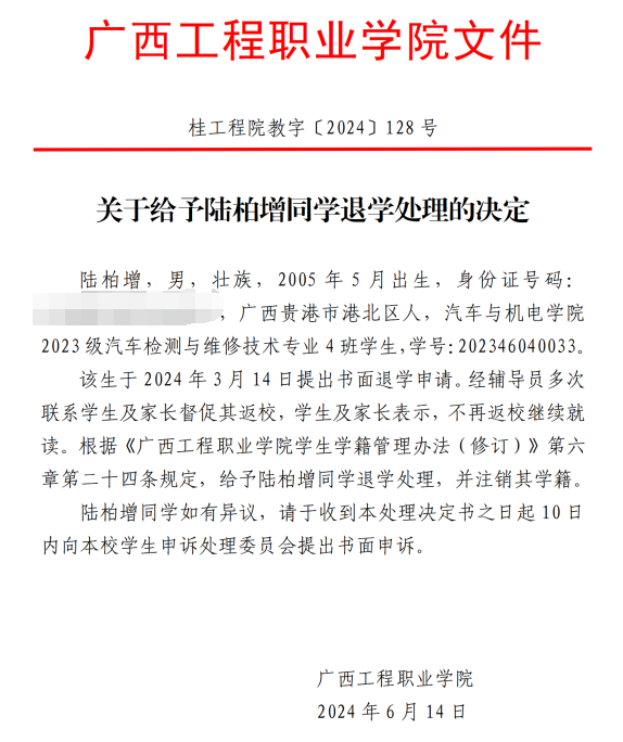 桂工程院教字〔2024〕128號關于給予陸柏增同學退學處理的決定.png