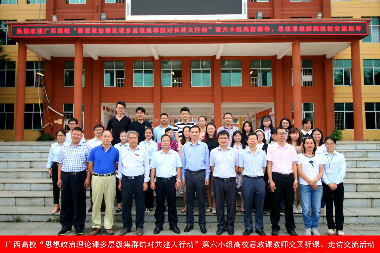 為深入貫徹落實(shí)習(xí)近平總書記在學(xué)校思想政治理論課教師座談會(huì)上的重要講話精神,高質(zhì)量辦好新時(shí)代學(xué)校思想政治理論課,根據(jù)自治區(qū)黨委教育工委、自治區(qū)教育廳關(guān)于印發(fā)《廣西高校“思想政治理論課多層級(jí)集群結(jié)對(duì)共建大行動(dòng)”實(shí)施方案》的通知(桂教工委宣〔2019〕15號(hào))文件精神及要求,第二層次共建高校第六小組于2019年10月17日上午在我校開展交叉聽課、走訪交流活動(dòng)。