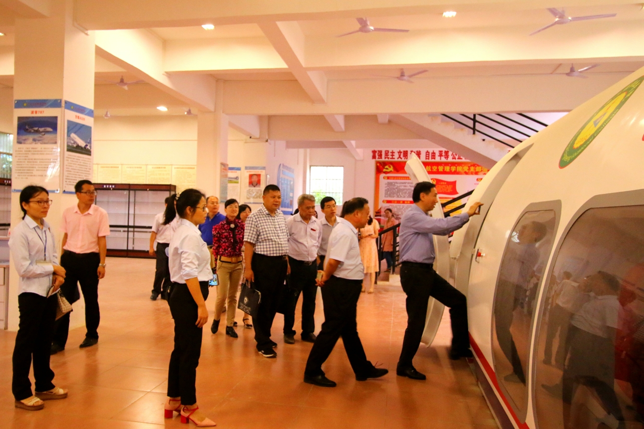 最后,與會(huì)人員在我校紀(jì)委書記李益的陪同下重點(diǎn)參觀了我校“高鐵動(dòng)車模擬艙”、“航空模擬艙”等實(shí)驗(yàn)實(shí)訓(xùn)室。