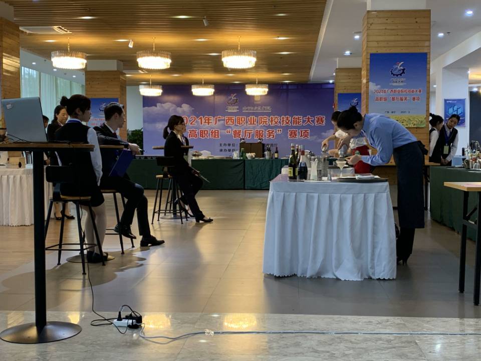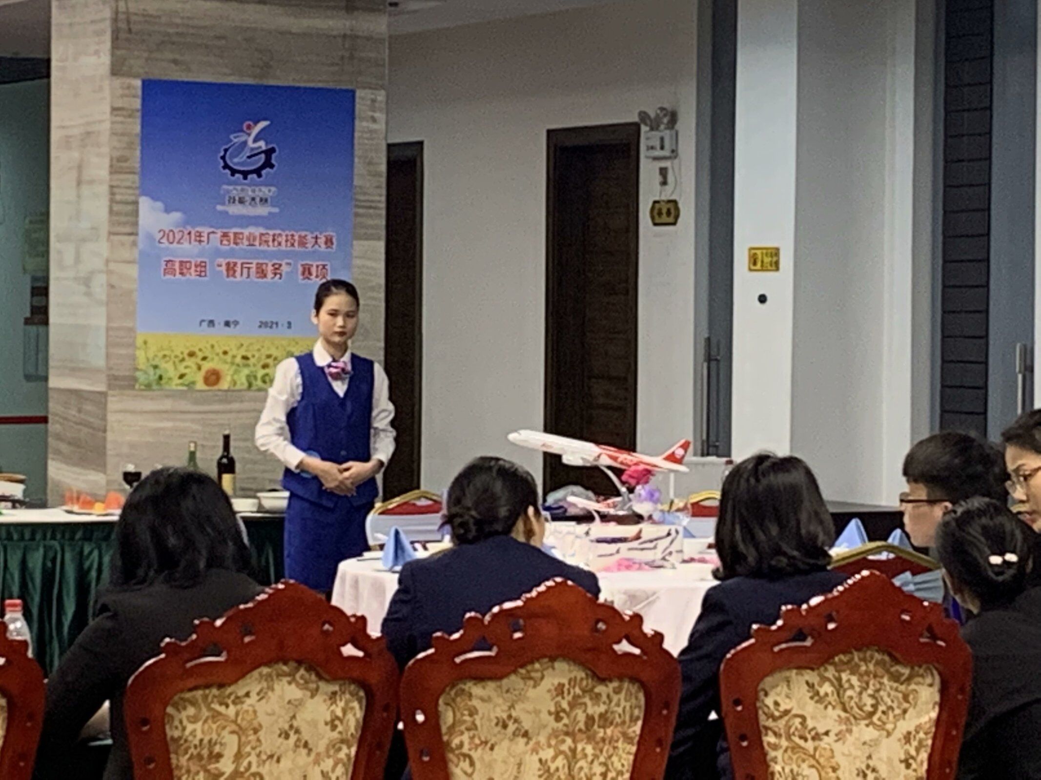 為積極備戰(zhàn)2021年廣西職業(yè)院校技能大賽餐廳服務(wù)賽項(xiàng),鐵道與航空學(xué)院參賽的師生結(jié)合本專業(yè)知識(shí)積極訓(xùn)練,努力備賽。