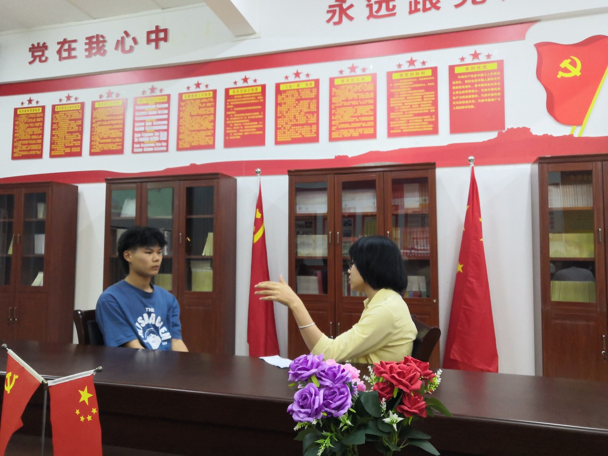 比賽在分團(tuán)委書(shū)記黃羽宣讀比賽評(píng)分標(biāo)準(zhǔn)后拉開(kāi)序幕。在比賽過(guò)程中,參賽的輔導(dǎo)員針對(duì)學(xué)業(yè)困難、心理健康、就業(yè)創(chuàng)業(yè)、校園貸款、網(wǎng)絡(luò)思政教育等大學(xué)生思想教育的熱點(diǎn)、難點(diǎn)問(wèn)題與學(xué)生進(jìn)行面對(duì)面談心談話。參賽的輔導(dǎo)員沉著應(yīng)對(duì),深刻剖析問(wèn)題的本質(zhì),并從多角度解決問(wèn)題。