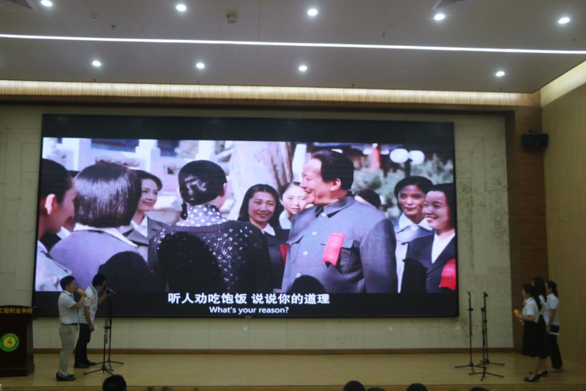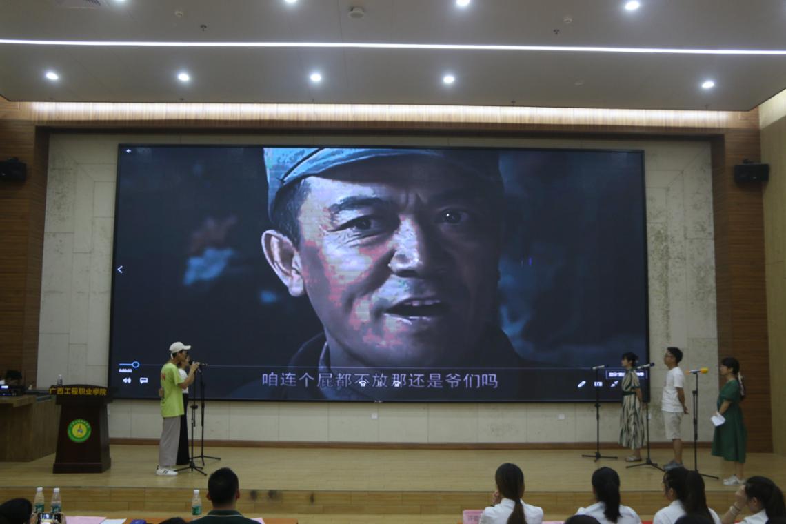 比賽在全體人員奏唱國(guó)歌中拉開序幕,在比賽過程中,各組選手分別為《建國(guó)大業(yè)》、《地道戰(zhàn)》、《烈火中永生》和《小兵張嘎》等紅色經(jīng)典電影配音,選手們相互配合,聲情并茂地將所演繹的角色表現(xiàn)得淋漓盡致,同時(shí)也展現(xiàn)出電影本身所表達(dá)的深刻含義。選手們的精彩表演贏得在場(chǎng)觀眾的陣陣掌聲。