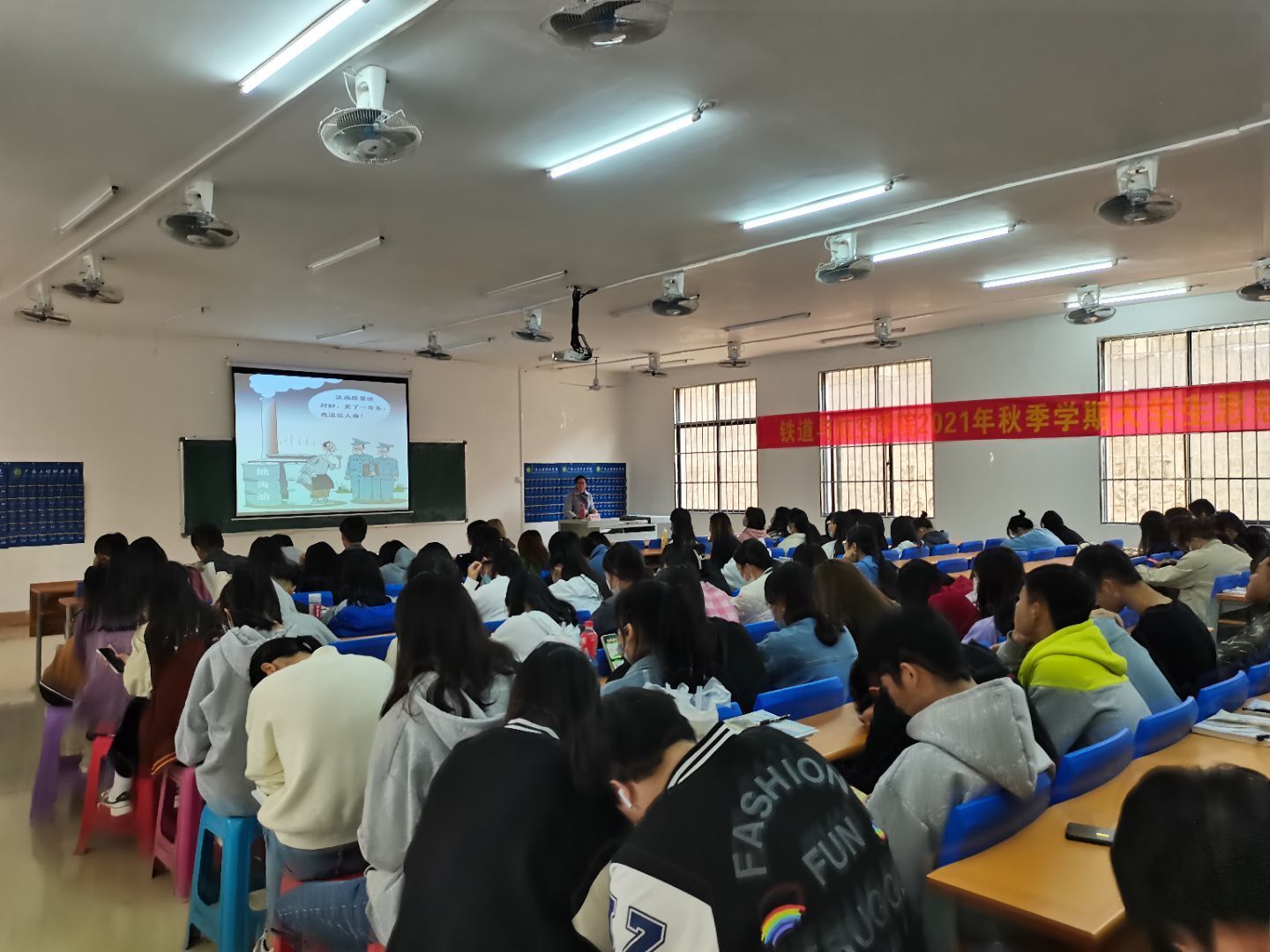 鐵道與航空學(xué)院黨支部書記、副院長覃鳳姣作“加強安全防范,提高安全意識”專題培訓(xùn)會