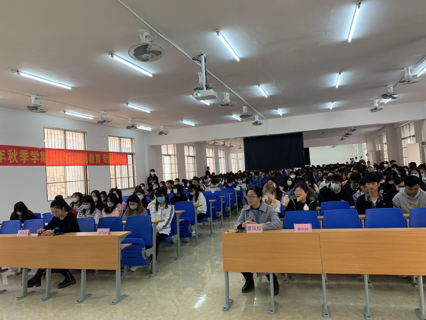 學(xué)生科科長謝小玲作“明制度,強信念,做合格大學(xué)生”專題培訓(xùn)會