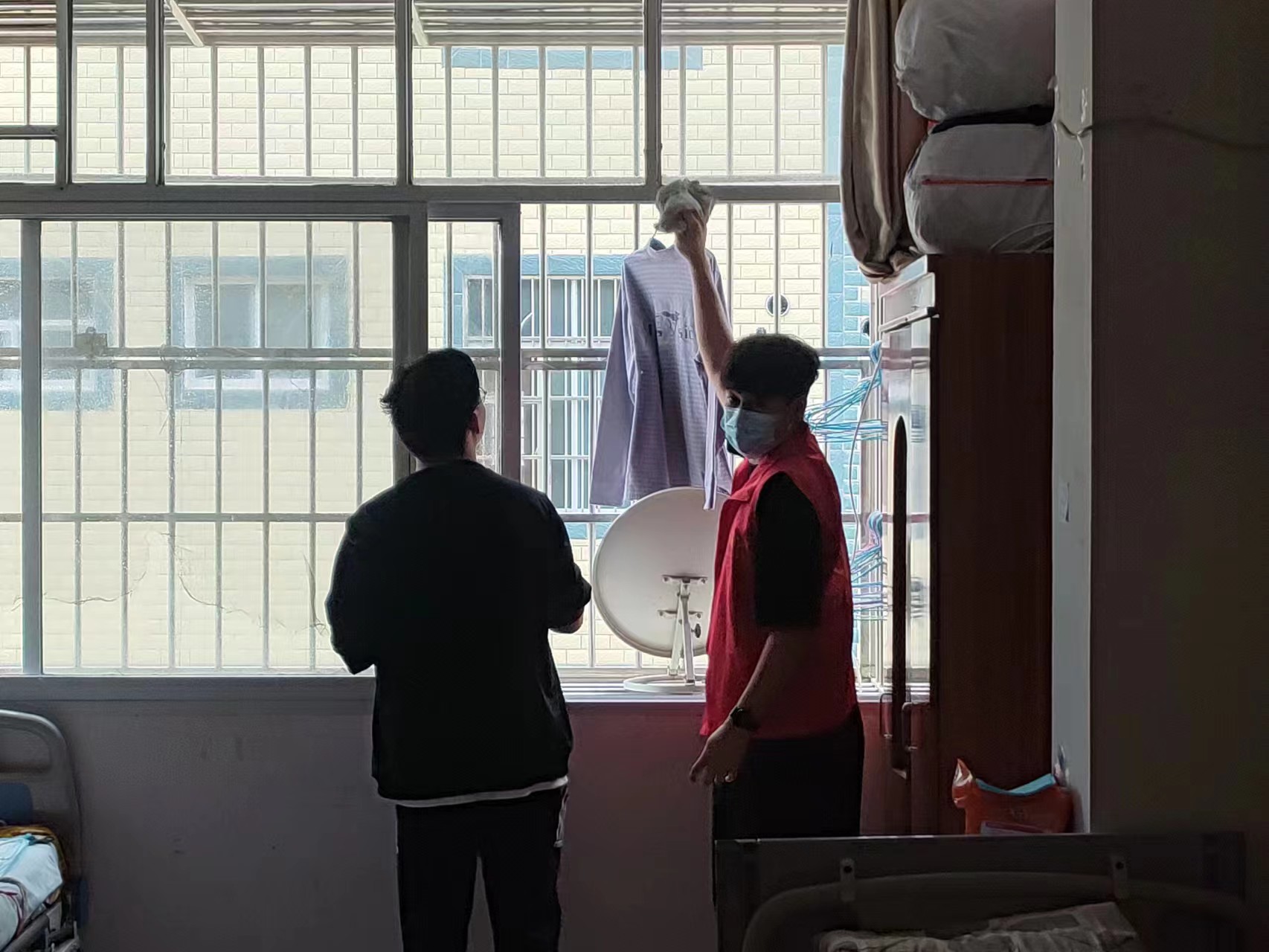 志愿者們打掃衛(wèi)生整理內(nèi)務(wù)