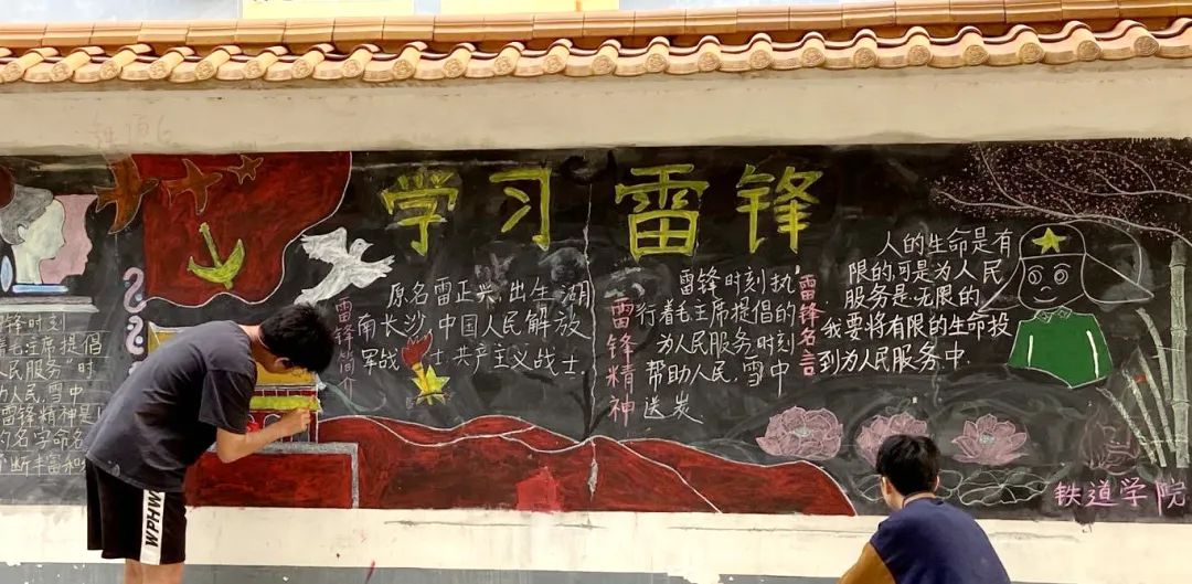 雷鋒精神駐心中,妙筆生花頌美德。鐵道與航空學院開展以“傳承雷鋒精神、爭做時代新人”為主題的黑板報評比活動。同學們用自己手中的粉筆,描繪出心目中的雷鋒形象,筆尖傾瀉著向雷鋒同志學習的心聲,雷鋒精神根植于同學們的內心,用心傳遞對英雄的敬意。
