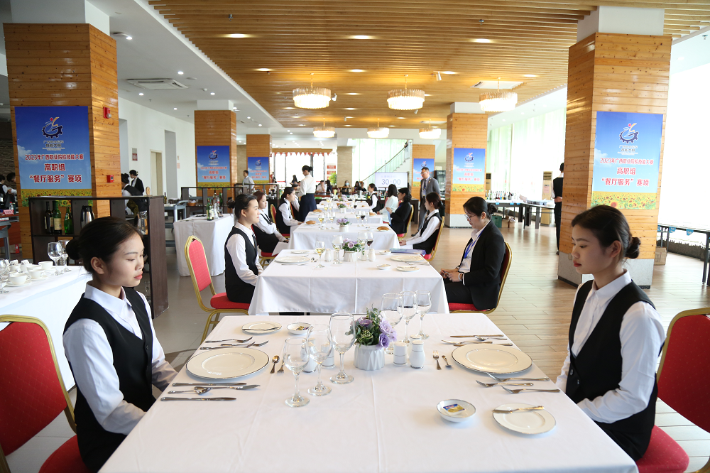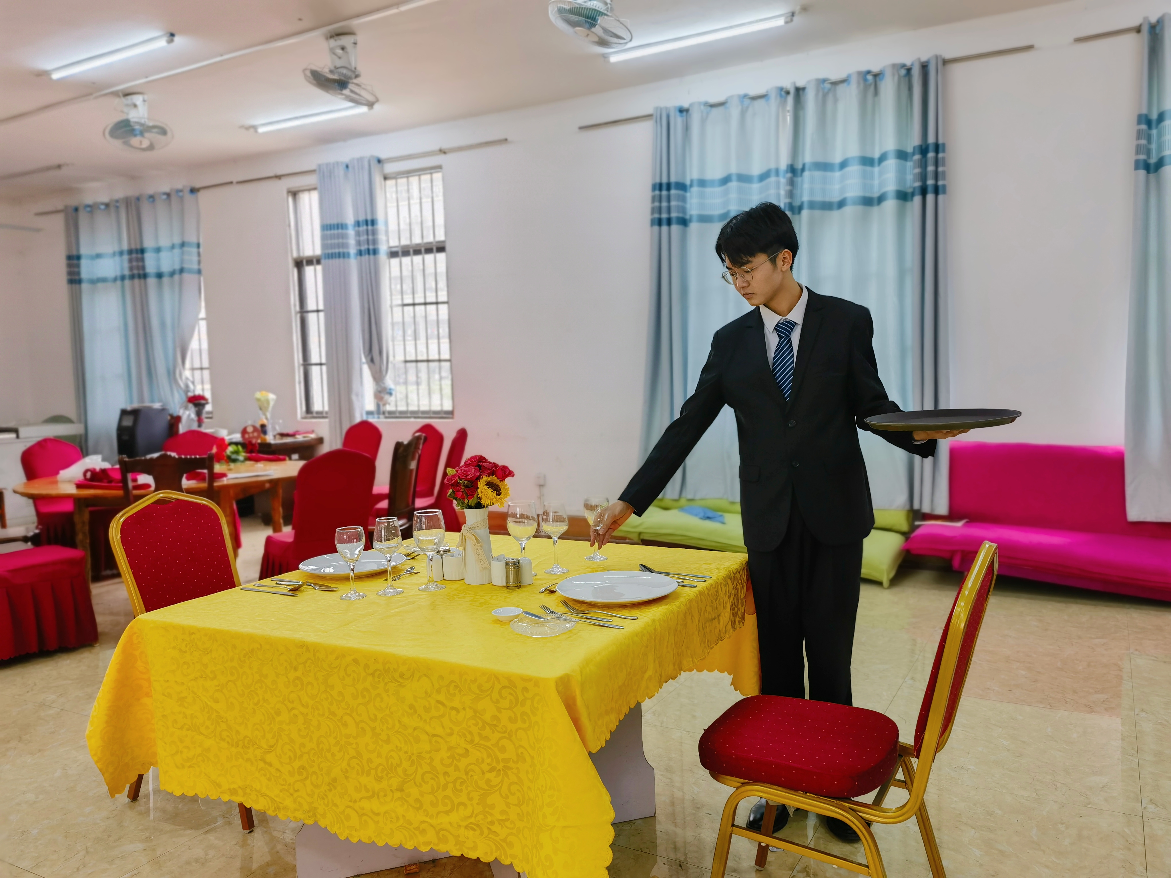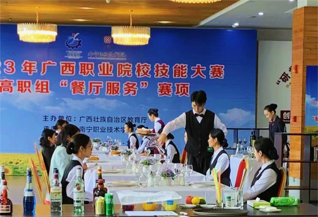 為充分激發(fā)學生的學習興趣和創(chuàng)新能力,提高學生自主學習和解決問題的能力,從而提升學生自身就業(yè)競爭力,3月16-19日,我院結合專業(yè)設置情況積極組織學生參加廣西職業(yè)院校(高職組)《餐廳服務》技能比賽。我院22級高鐵1班陳華富、22級城軌3班鐘榮浩兩位同學參加此次比賽,盧桂玉、謝宏玲兩位老師指導比賽。