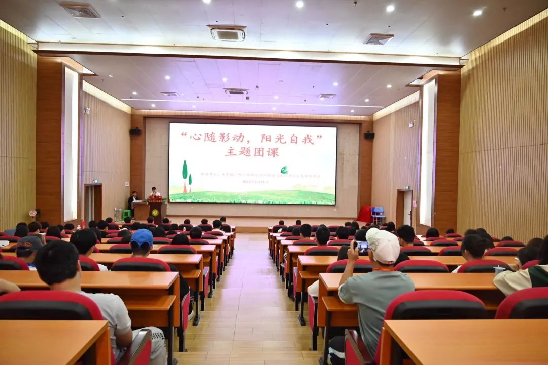 鐵道與航空學院分團委書記謝小玲介紹完團課影片內(nèi)容后,工作人員播放電影,“影隨心動,陽光自我”主題團課正式開始。